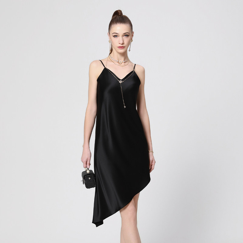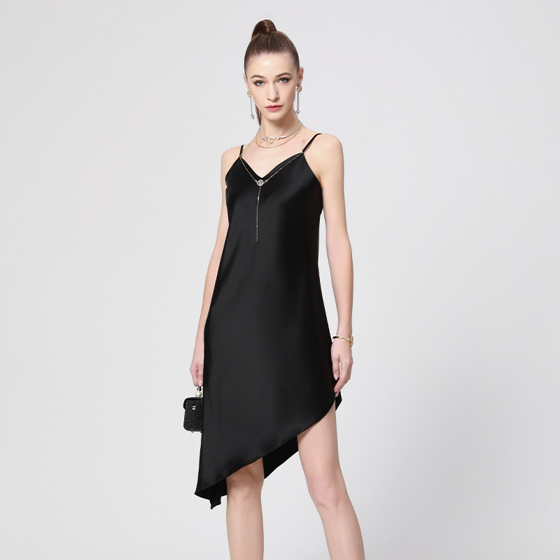 kodice春夏新款黑色三醋酸混纺吊带裙连衣裙子链条时尚性感女装