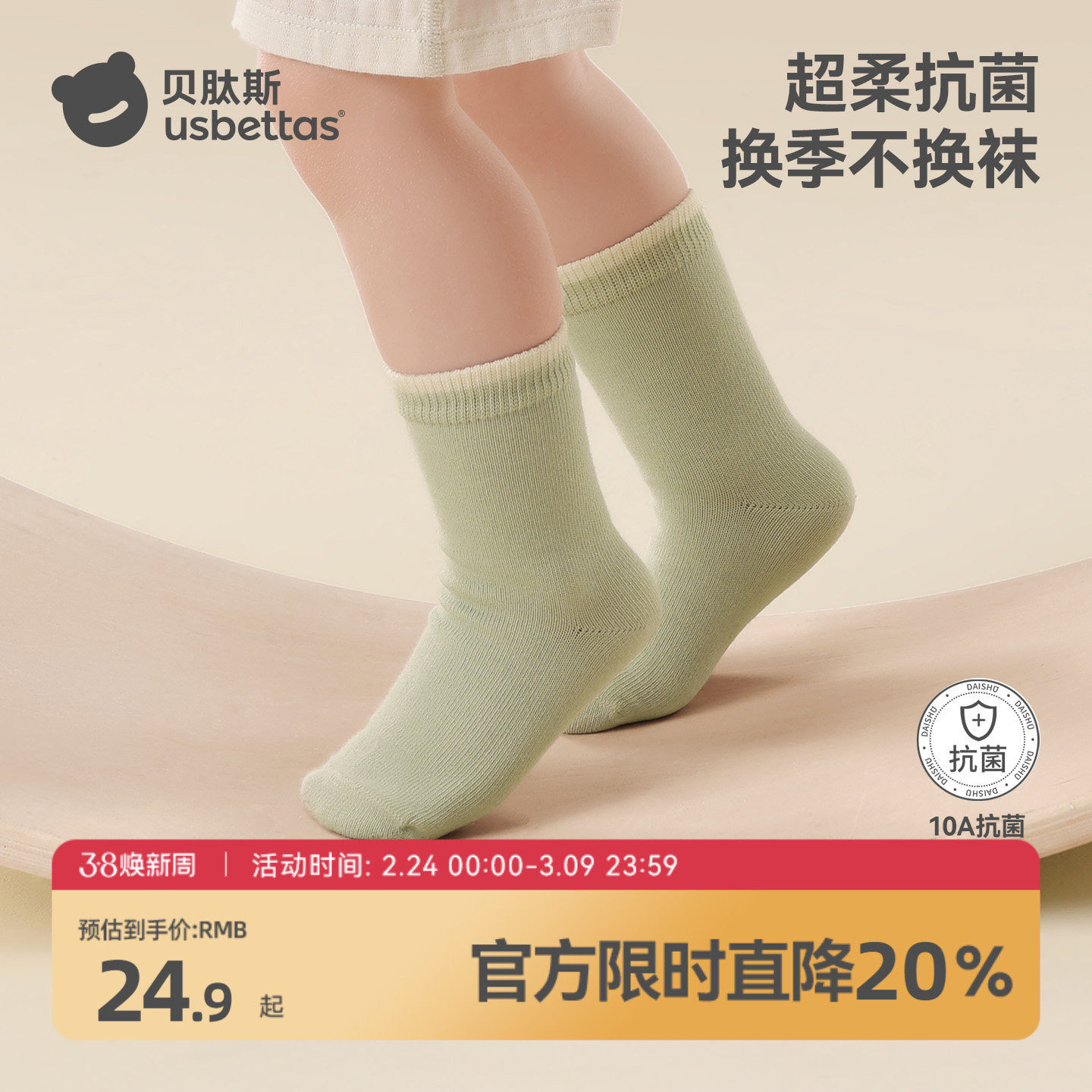 贝肽斯宝宝袜子纯棉春夏季婴儿袜男女儿童袜子新生a类中筒抗菌袜