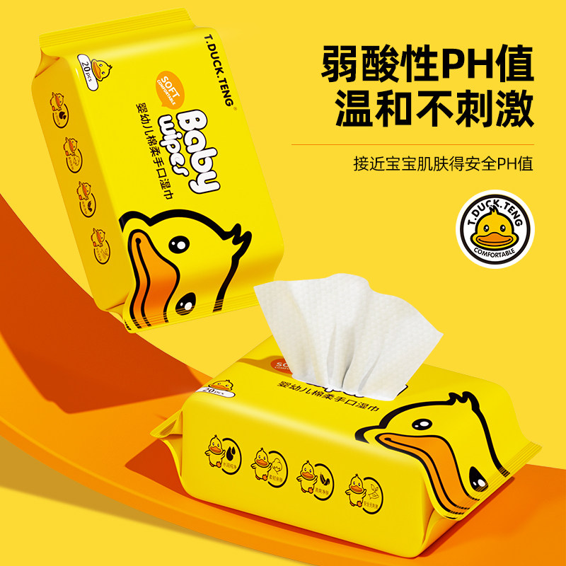 小黄鸭湿巾20抽一次性儿童手口清洁便携小包湿纸巾婴儿大包上学