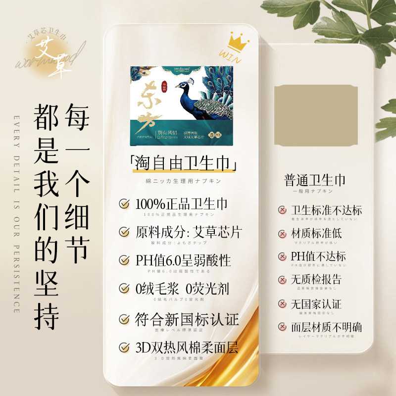 艾草卫生巾日夜用组合超薄透气姨妈巾护垫官方旗舰店正品标准日用