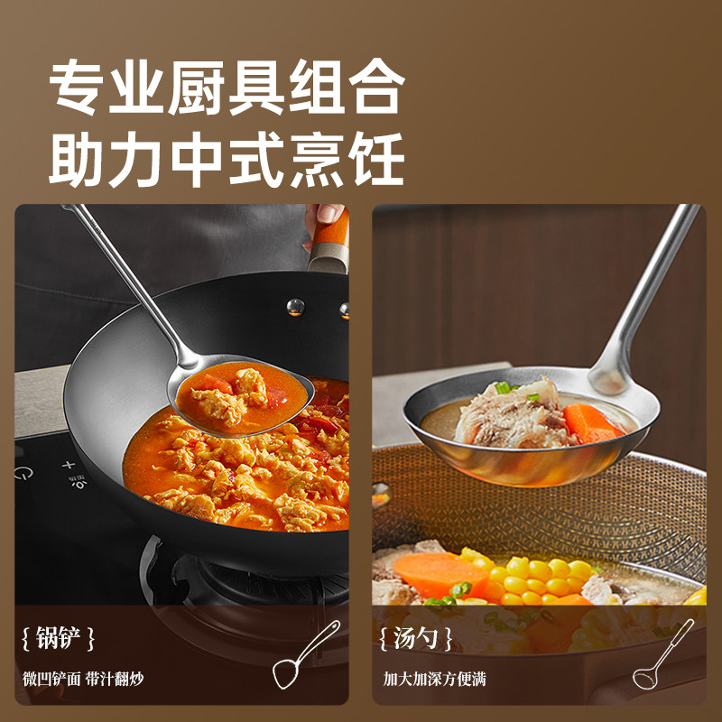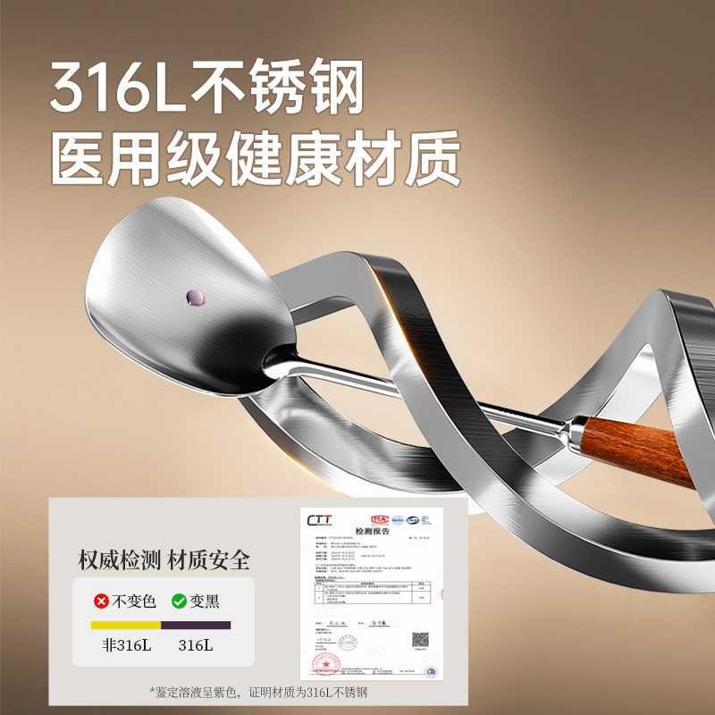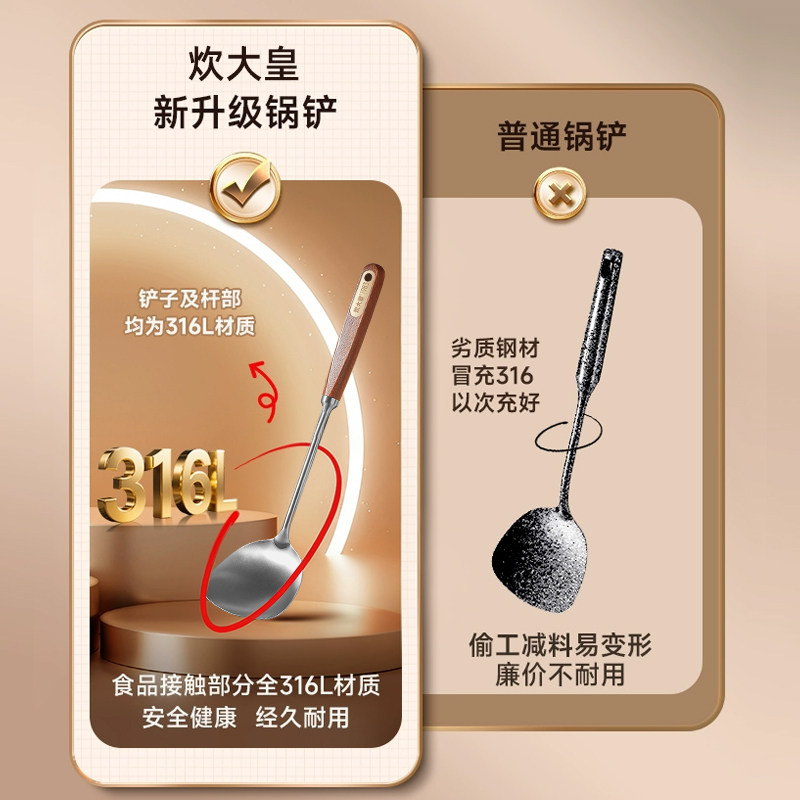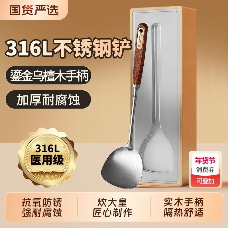 炊大皇乌檀木真316L不锈钢锅铲加厚加长家用厨具炒菜铲子汤勺铲勺