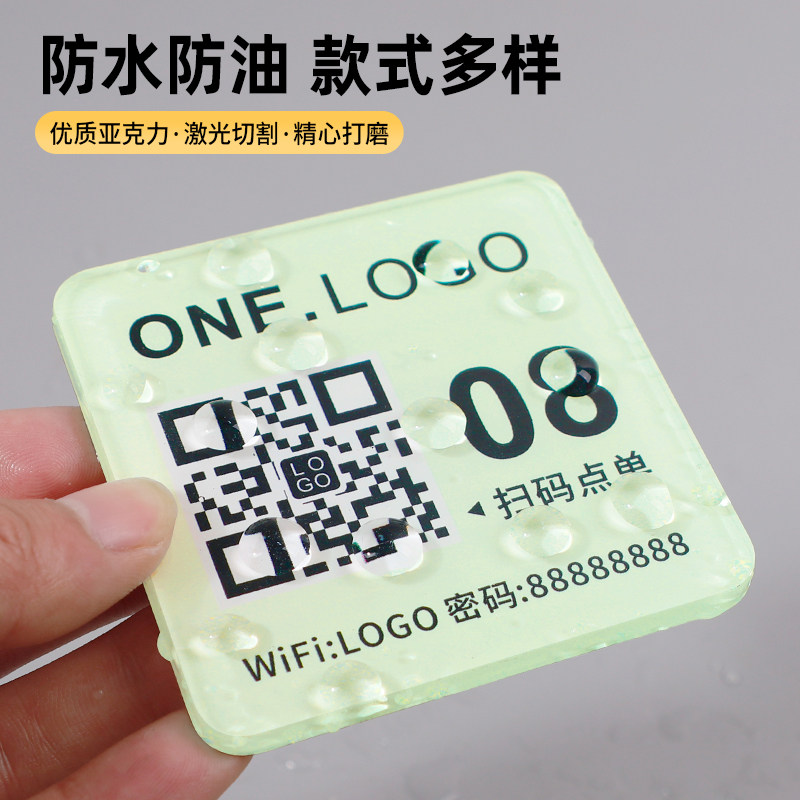 桌号牌扫码点餐二维码桌贴收钱牌设计定做手机扫一扫点菜牌子桌台咖啡奶茶店扫码自助点单亚克力数字号码贴牌