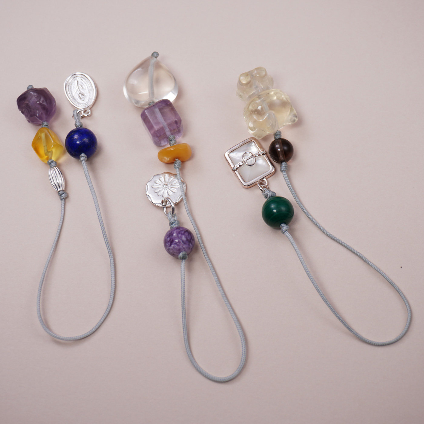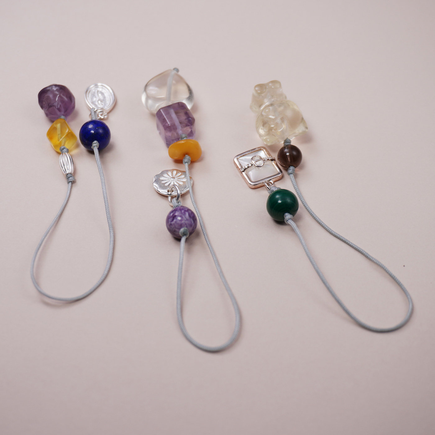 天然紫水晶串珠手机链挂件甜美手工钥匙扣包包挂饰短款银玉石挂坠