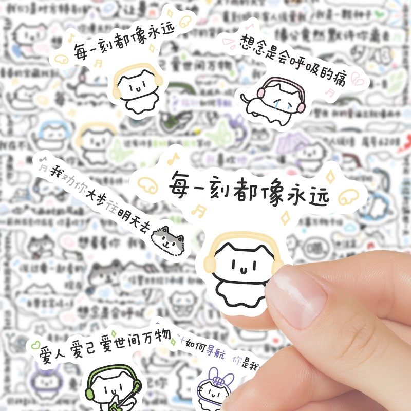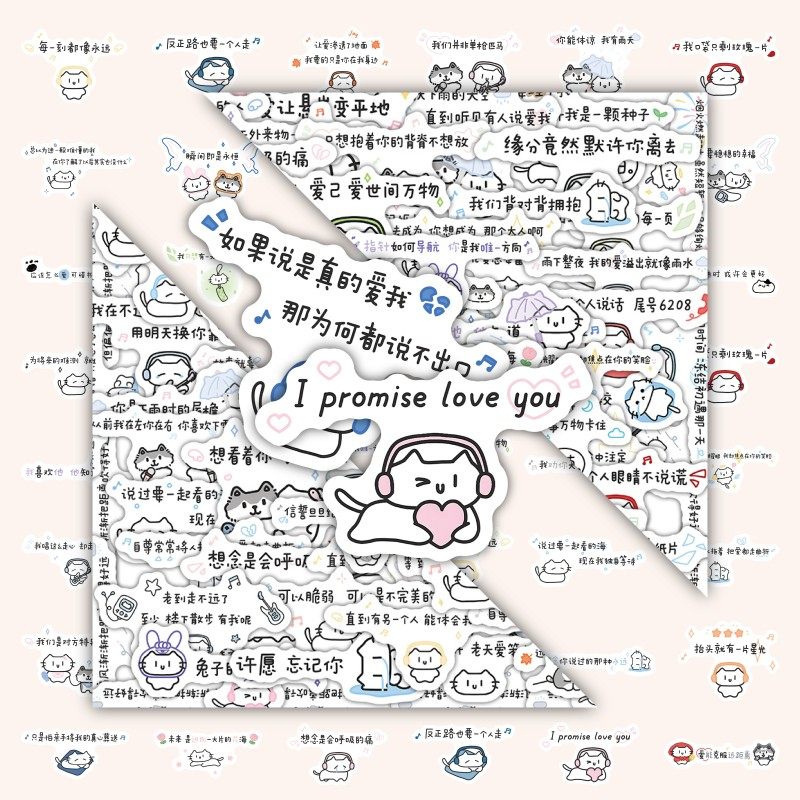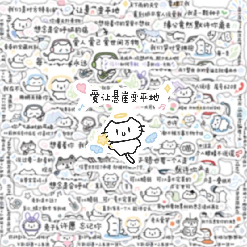 歌词小猫贴纸儿童女孩卡通可爱封口贴桌面遮丑咕卡打包素材防水diy