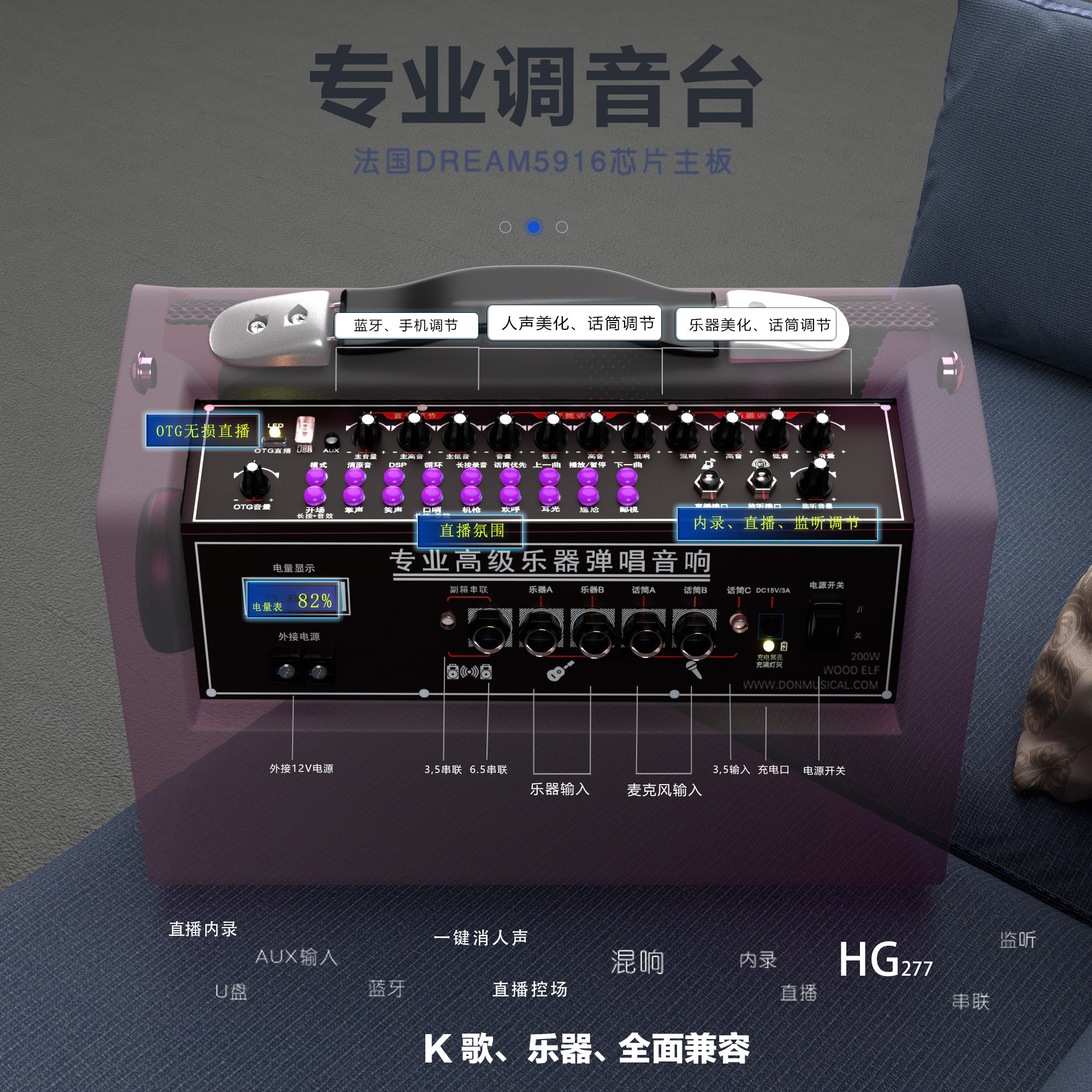 户外大功率蓝牙音响充电乐器唱歌声卡音箱直播内录吉他K歌大音量