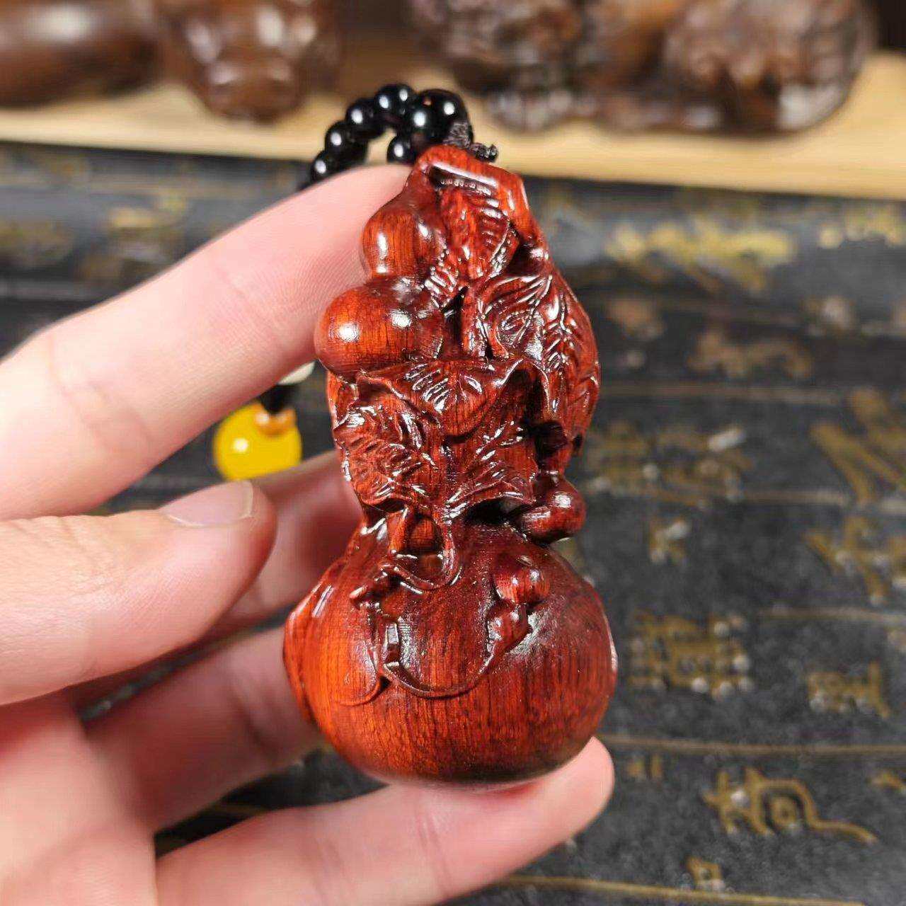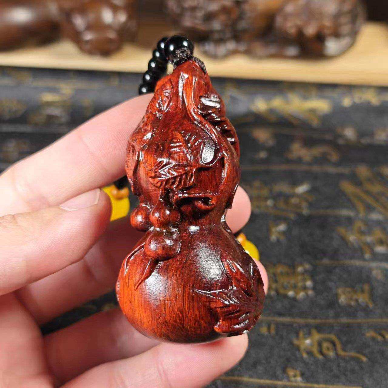 7公分小叶紫檀木葫芦实木雕刻新款多子多福葫芦手把件挂件桌面