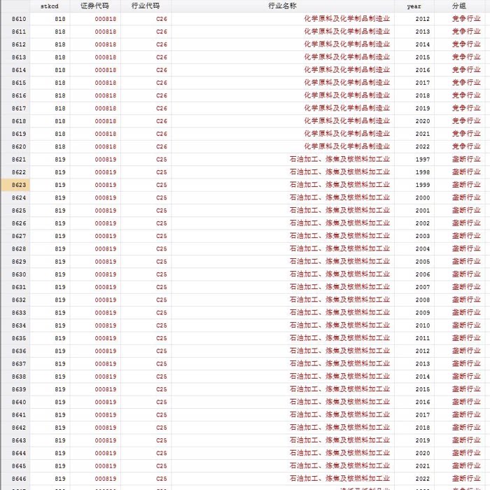 【更新数据】上市公司垄断行业和竞争行业分组指标整理Stata