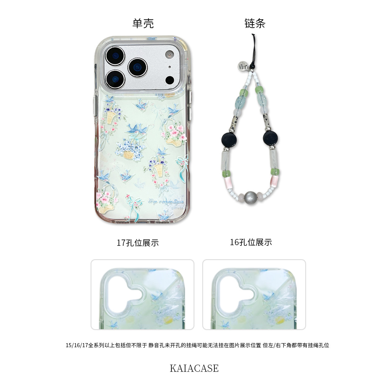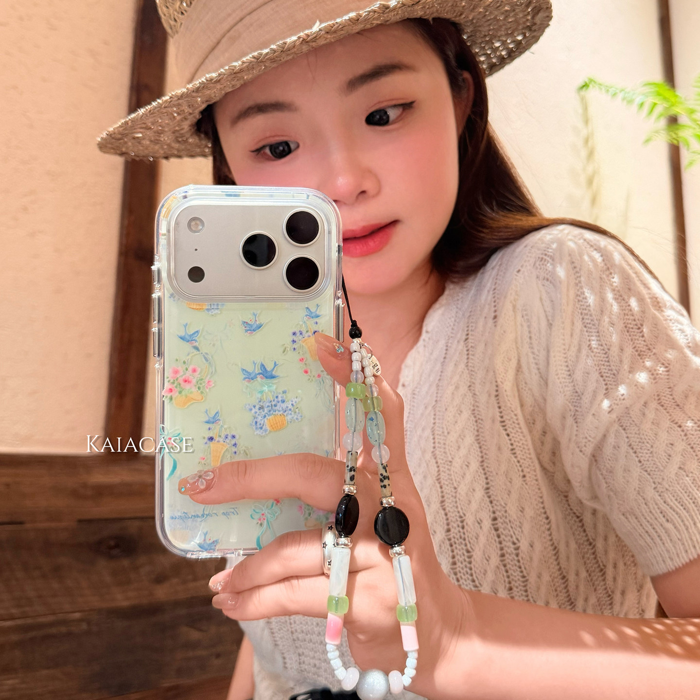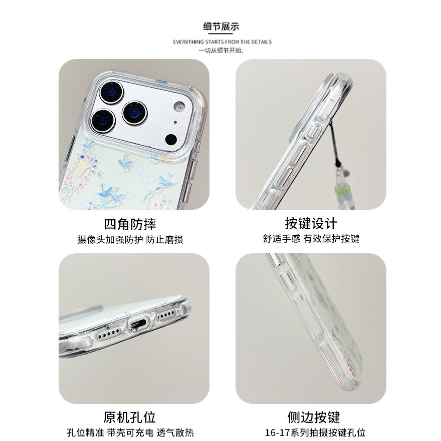 kaia 春款ins清新油画花篮燕子适用苹果17promax手机壳iphone16pro新款17女14pro带链条15pro全包防摔手机套