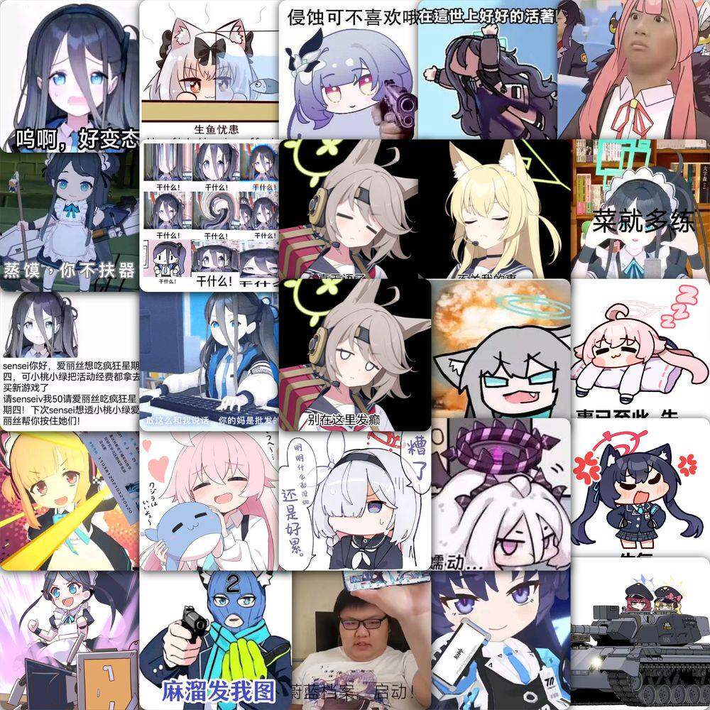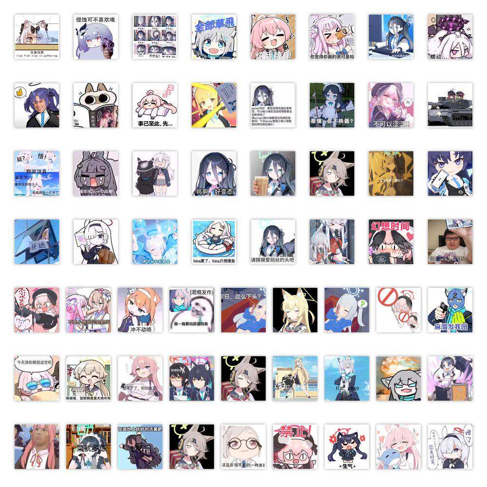 59张蔚蓝档案梗图贴纸搞笑趣味二次元动漫装饰手账素材防水小贴画