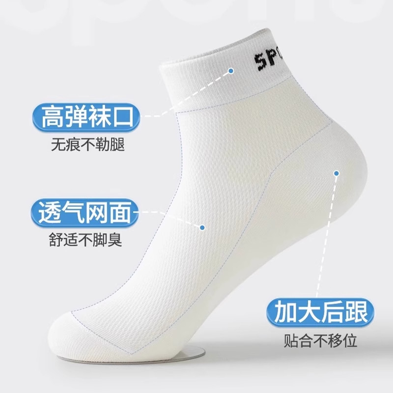 袜子男款短袜夏薄款纯棉防臭中筒袜夏天男士网眼袜吸汗透气运动袜
