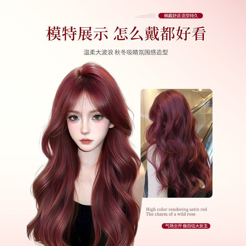 假发整顶全头套女长卷发树莓红大波浪Lolita自然日常仿真发假发套