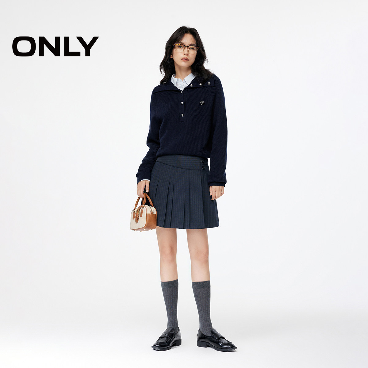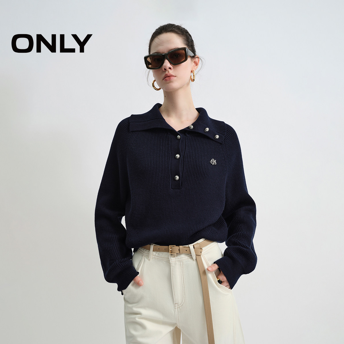 ONLY2026春季新款知性大翻领插肩版型密织面料纯色长袖针织衫女