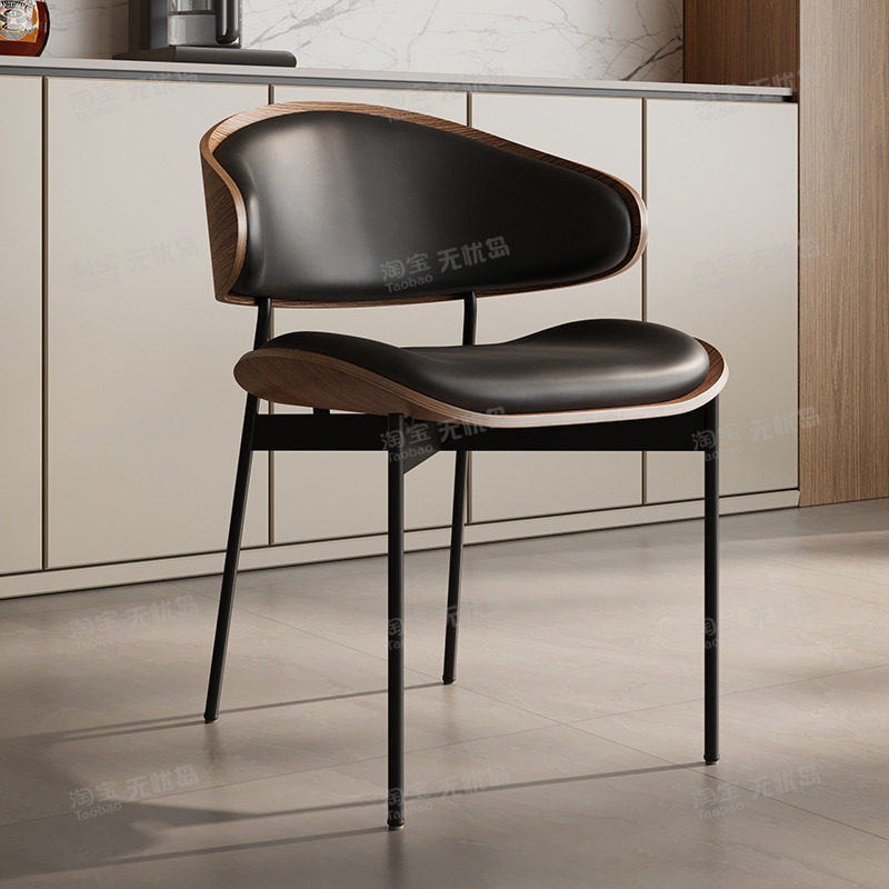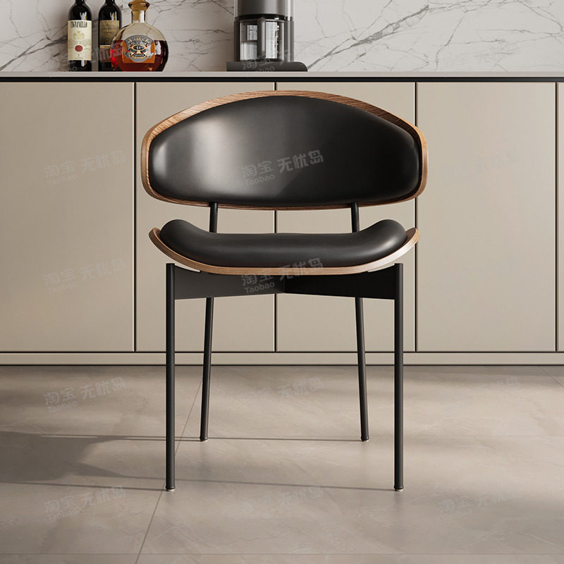 轻奢侘寂风餐椅皮软包设计师现代弯曲木咖啡厅实木椅子家用书房椅