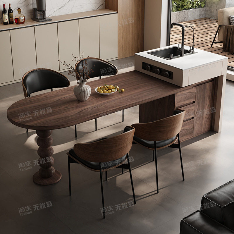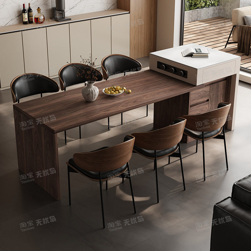 实木岛台餐桌椅家用设计现代简约法式中古风靠背椅子胡桃木复古椅