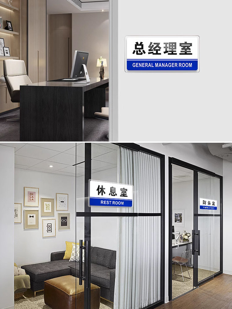 亚克力标识牌办公室门牌订制总经理室公司部门科室牌标志办公门口牌子仓库生产车间财务室标示铭牌门贴定制
