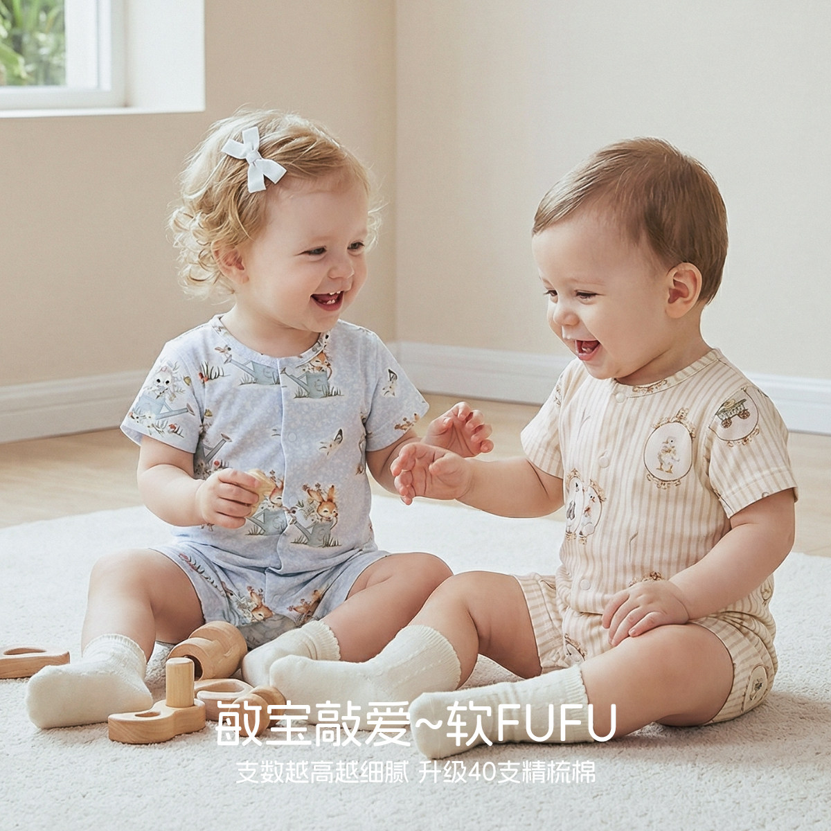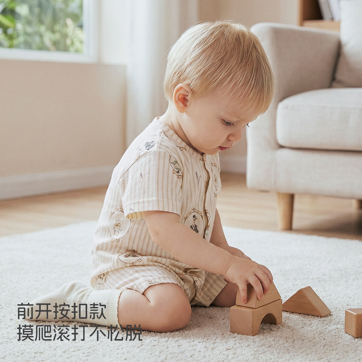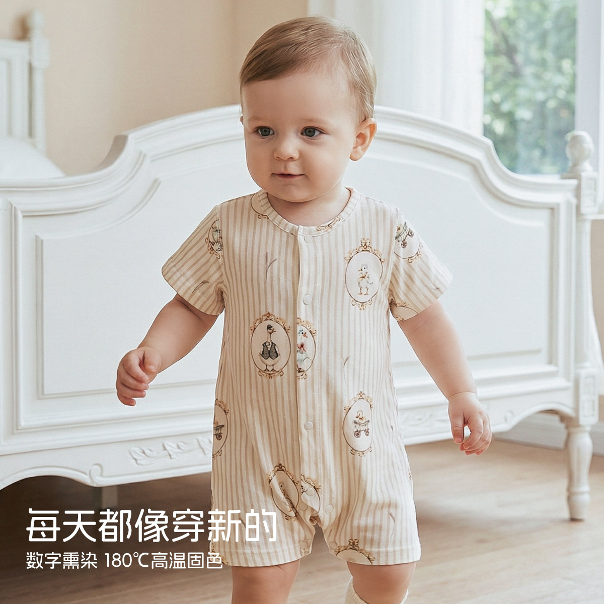 aqpa爱帕婴儿连体衣哈衣短袖纯棉夏季宝宝衣服睡衣小月龄可爱萌