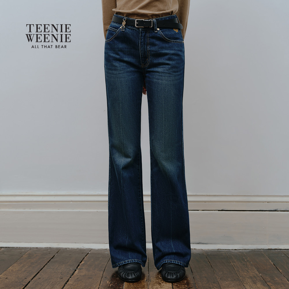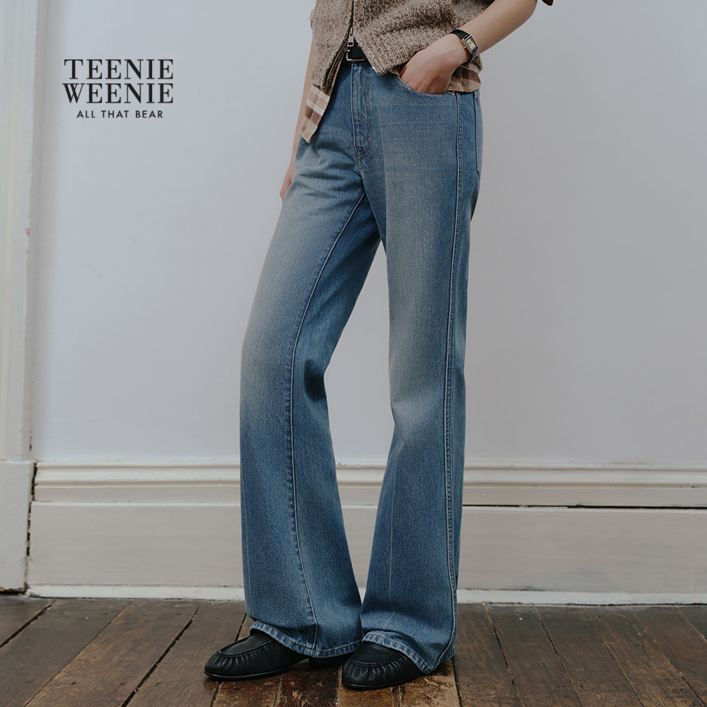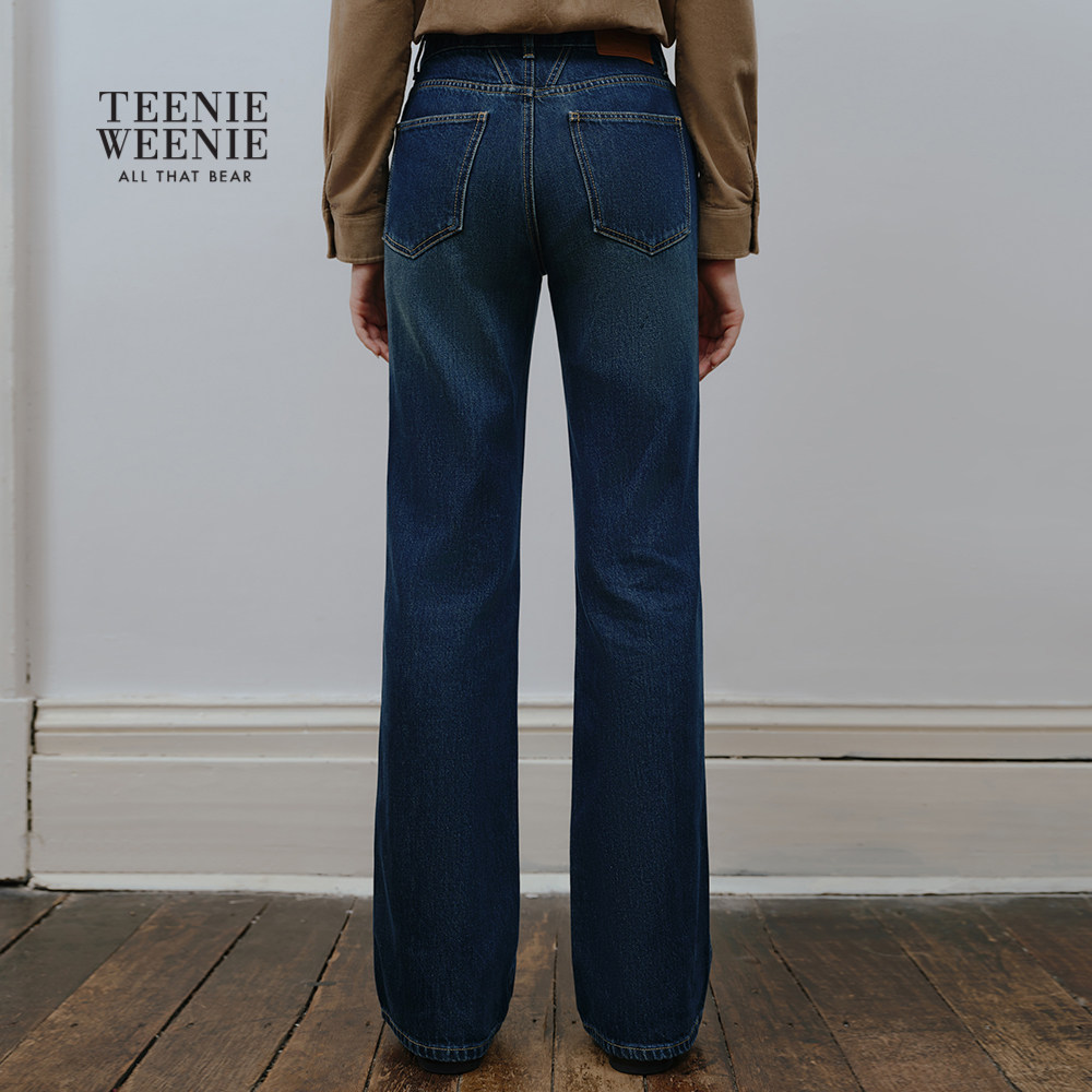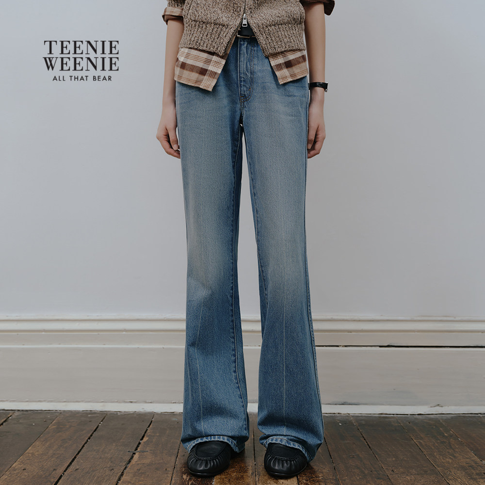 TeenieWeenie小熊女装牛仔裤冬季简约休闲舒适通勤复古微喇裤长裤