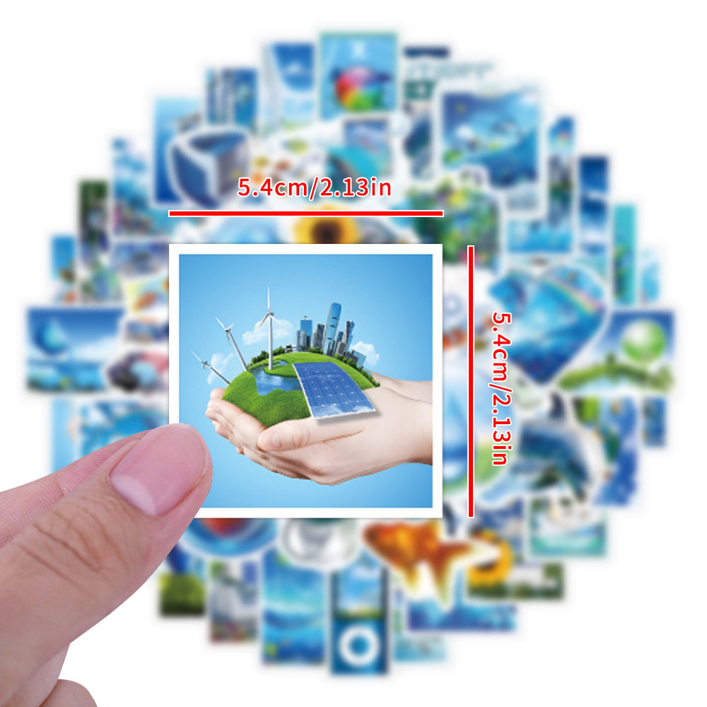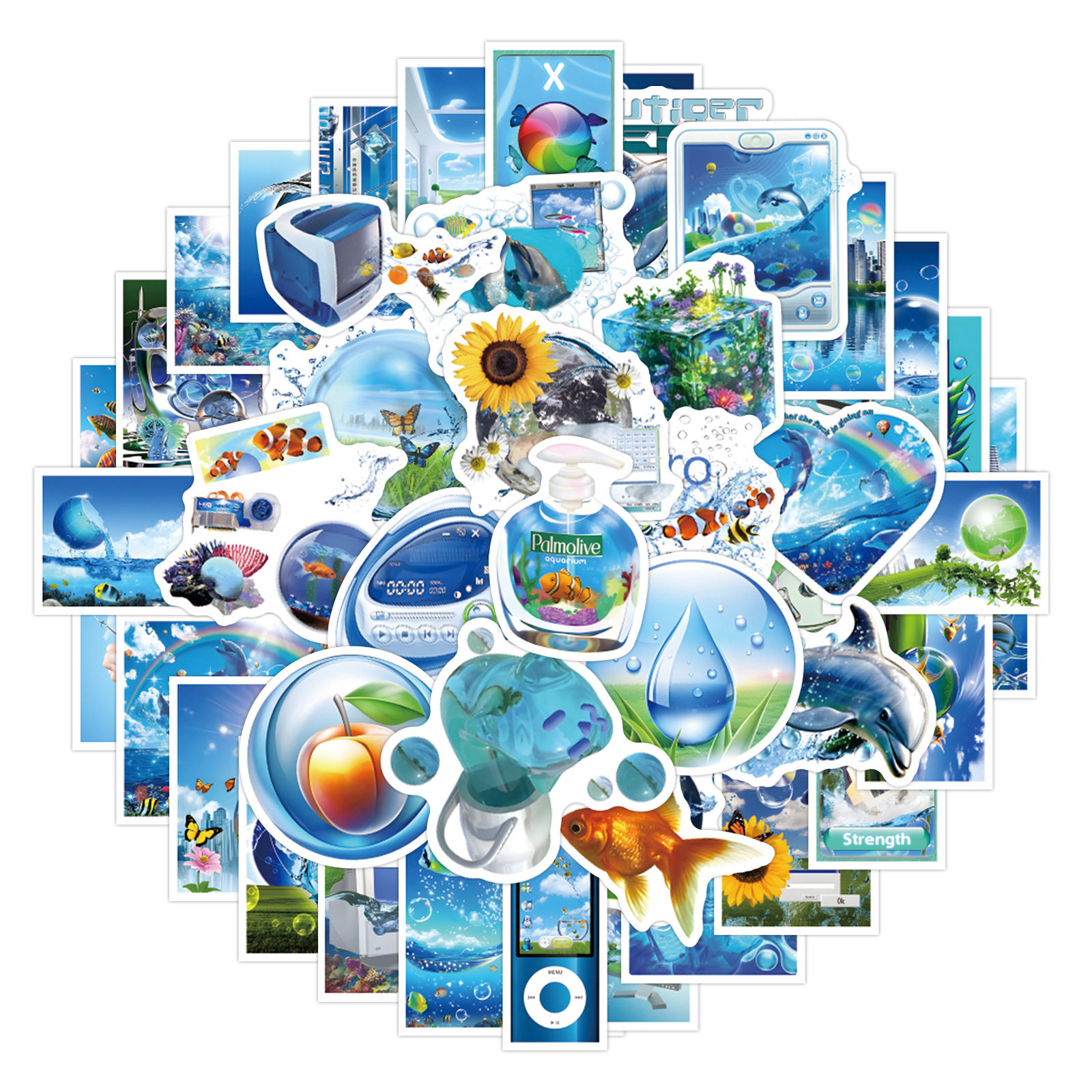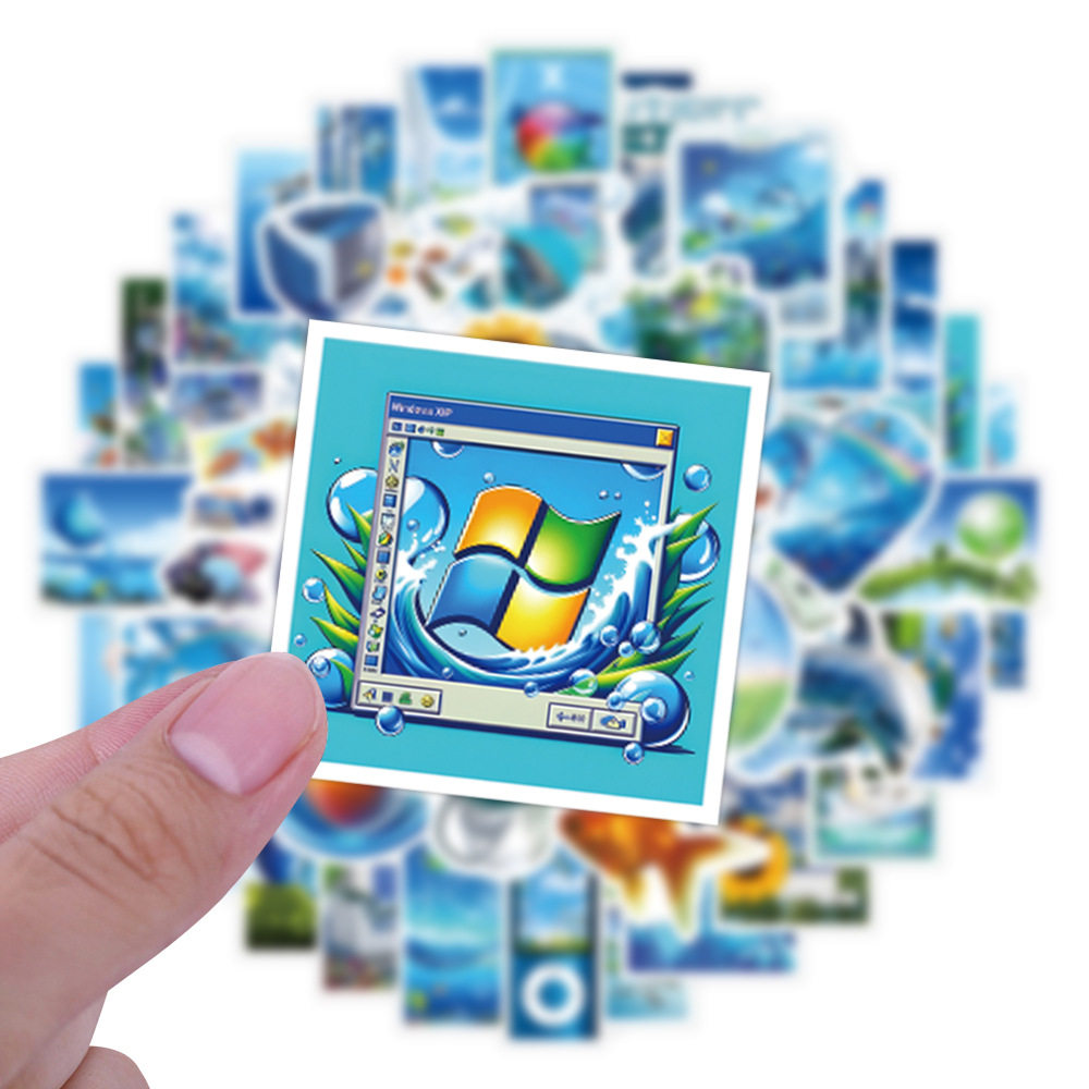 55张Frutiger Aero美学贴纸蓝色小清新装饰吉他水杯手机防水贴画