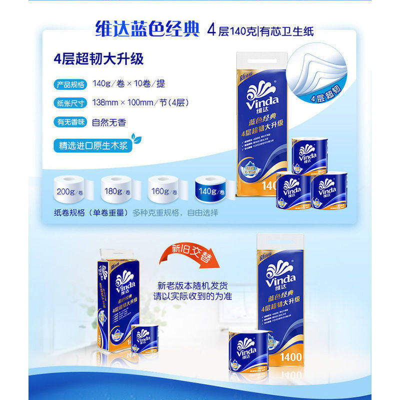 【孙颖莎推荐】维达卷纸蓝色经典有芯4层200g卫生纸巾家用实惠装