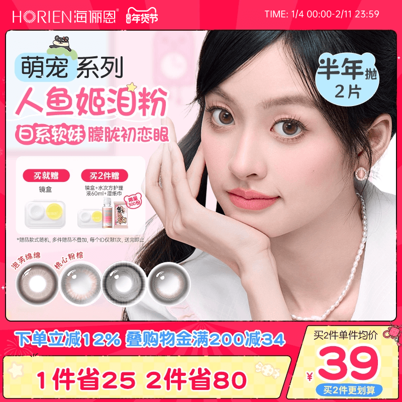 [上新!买2享5]海俪恩萌宠美瞳半年抛2片泡芙绵绵隐形眼镜小直径