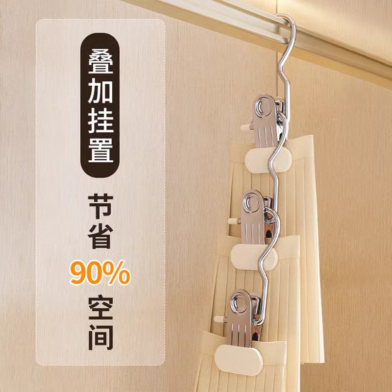 新款裤夹子家用无痕不锈钢多功能带挂钩裙子裤子收纳神器夹子衣架