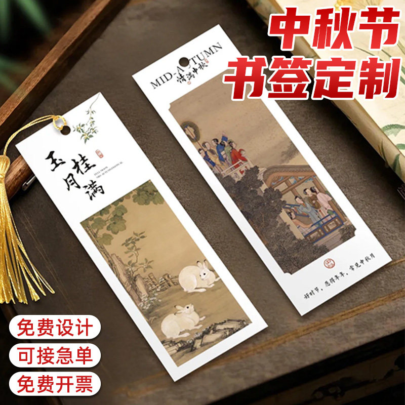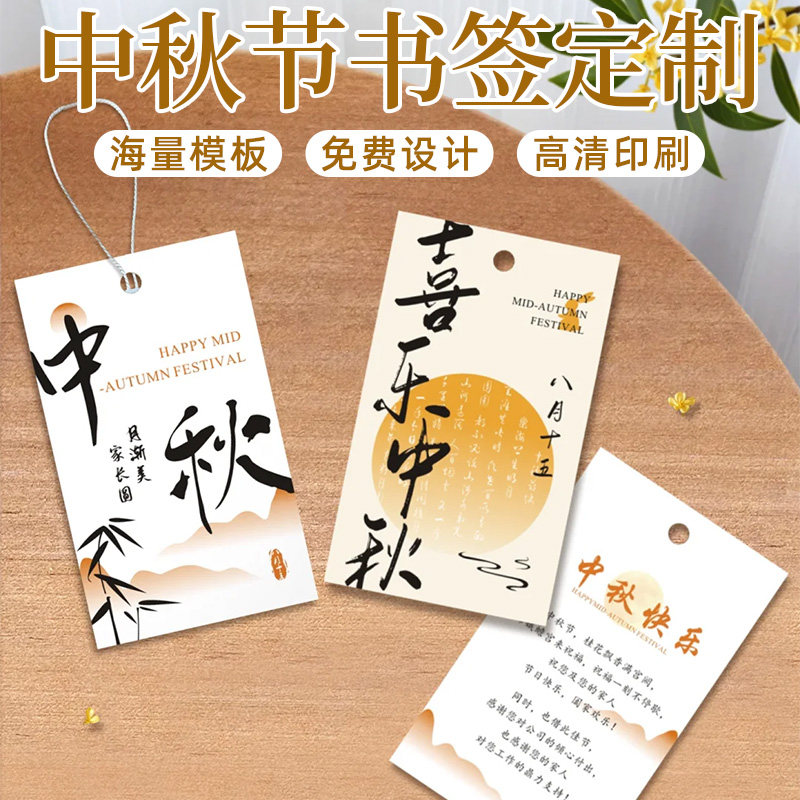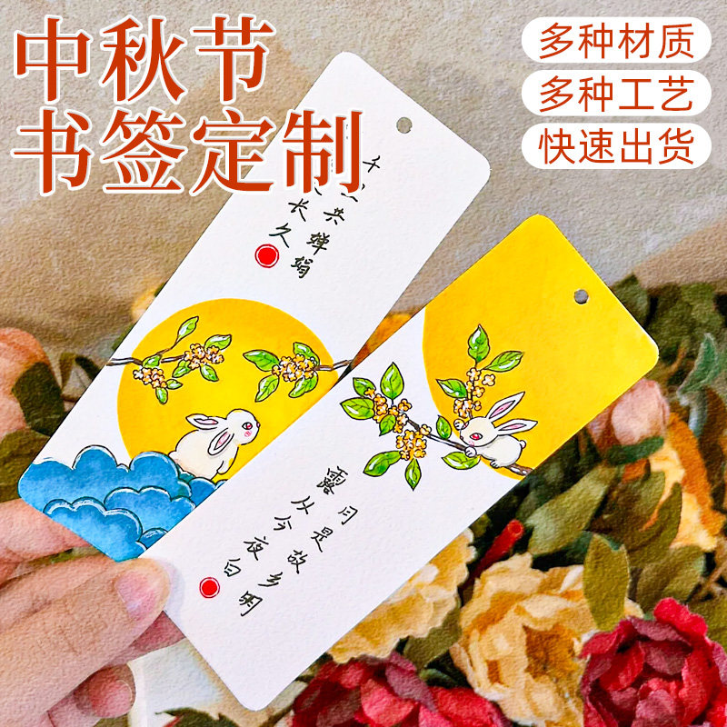 中秋节书签定制礼盒装饰吊牌卡贺卡异形挂牌设计校园节日文创活动手写书法硬卡制作月饼口味标签小卡个性定做