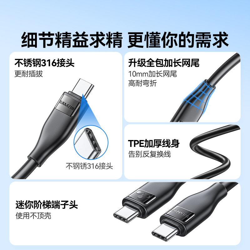 山泽全功能typec线双头快充电数据线pd100W高速传输4K视频投屏电脑显示器连接线笔记本平板适用手机苹果17/15