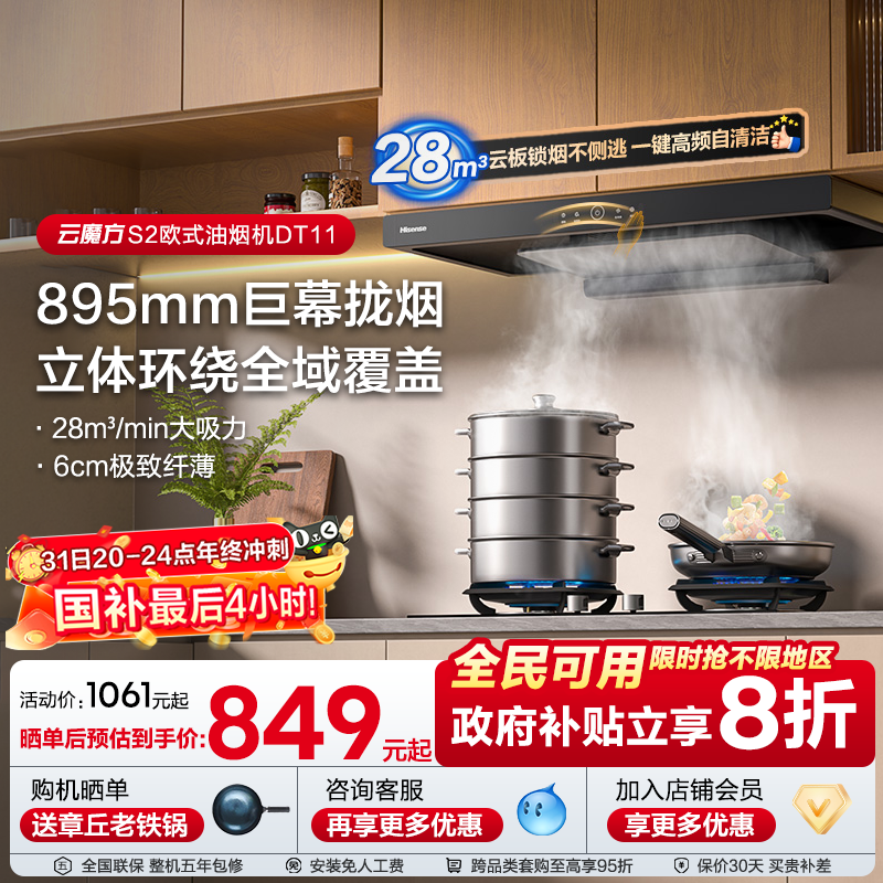 海信欧式顶吸抽油烟机28立方大吸力挥手云魔方系列烟机套装DT11