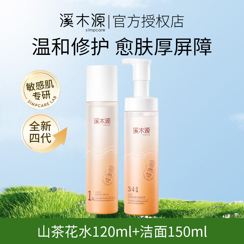 溪木源山茶花舒敏修护水乳沁透舒缓精华水爽肤水洁面泡沫面霜