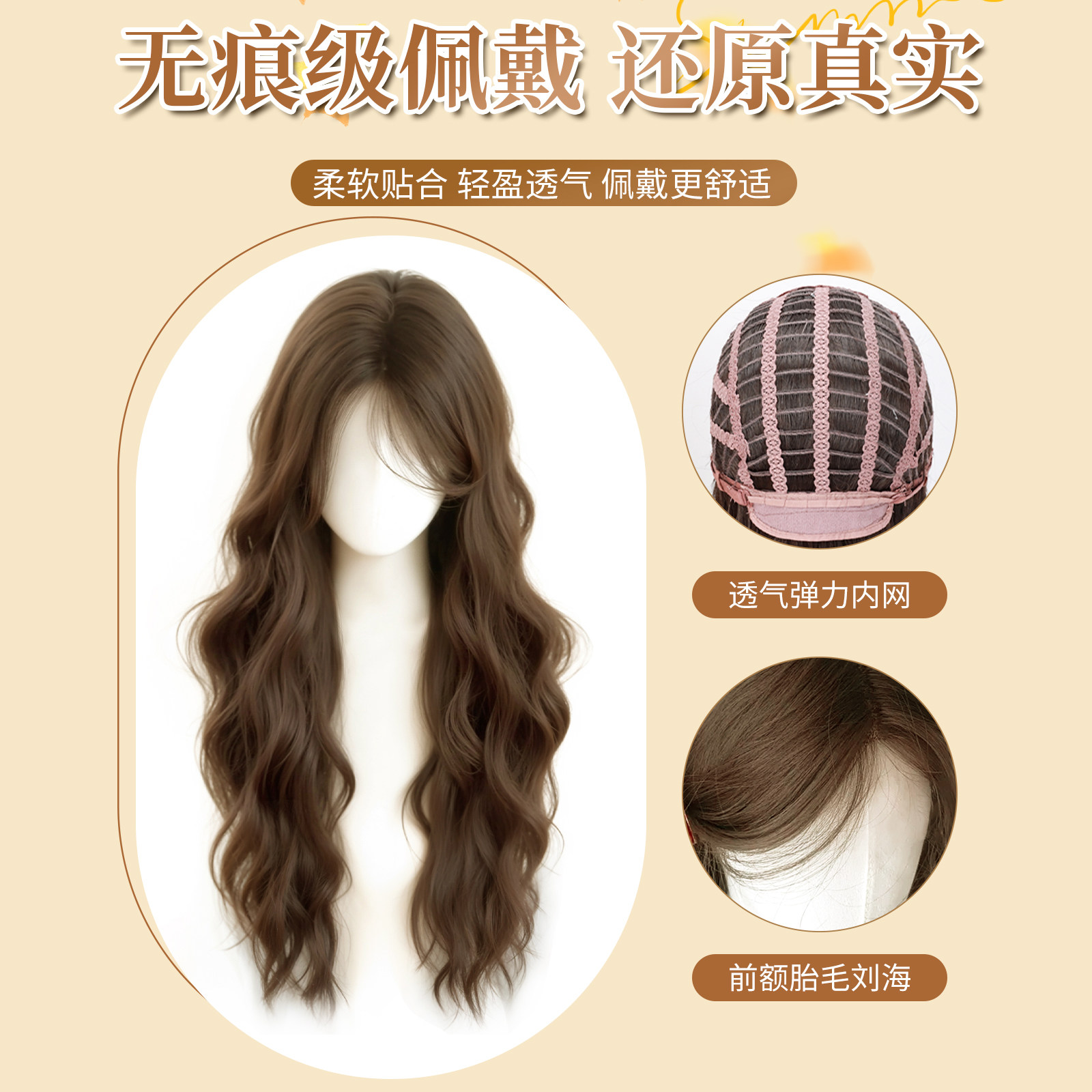 假发全头套女仿真发水波纹长卷发日常假发套棕色长发刘海八字中分