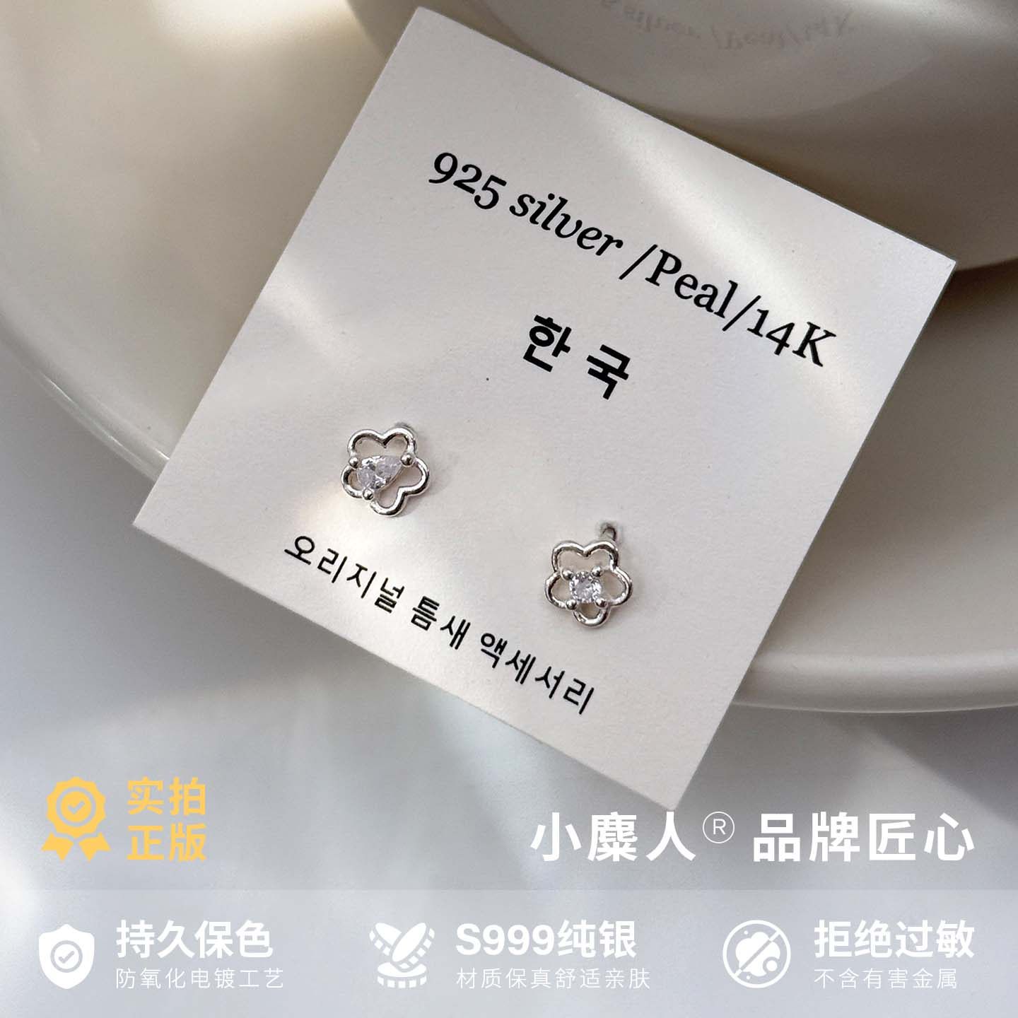 小麋人999纯银耳钉女小山茶花耳环耳饰小众闺蜜礼物爆款气质简约