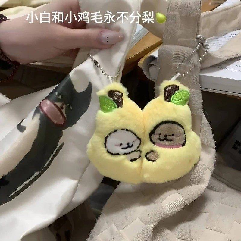 永不分梨钥匙扣线条小狗书包挂件情侣对扣可爱毛绒磁吸款包包r