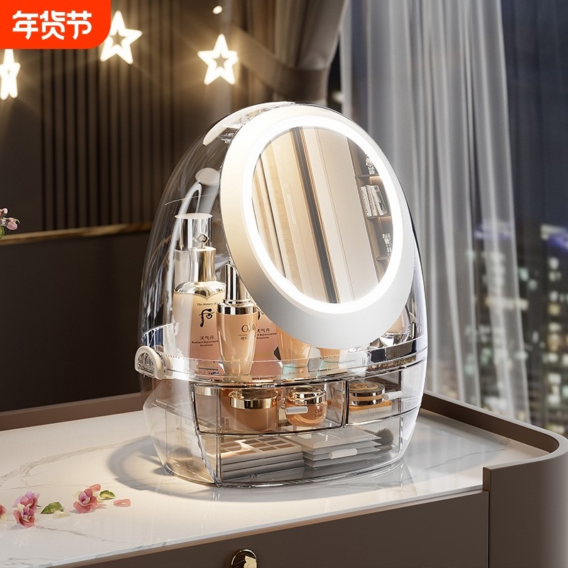 2025新款化妆镜化妆品收纳盒桌面防尘高级感梳S妆台护肤品口红眼