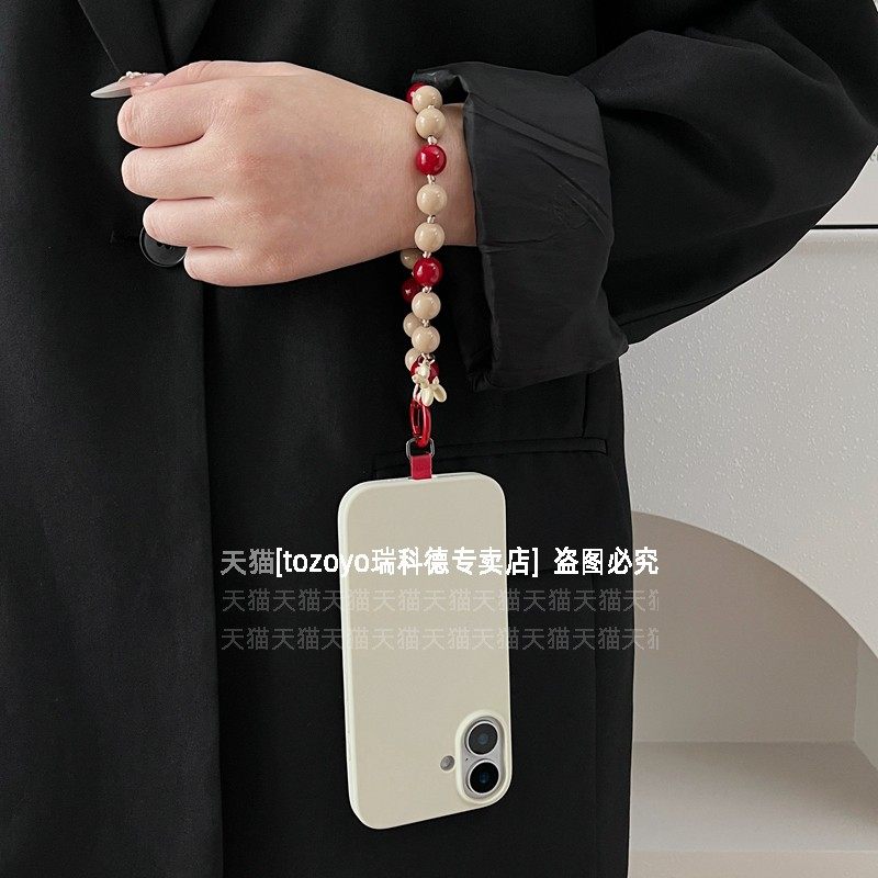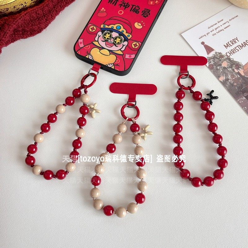 酒红色手机链挂绳招财转运2025新款高级感手腕挂件本命年重工串珠链条过年喜庆腕带手链钥匙扣包包防丢夹片壳