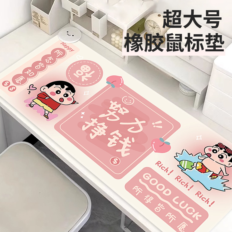 可爱蜡笔小新励志文字鼠标垫超大高颜值办公桌垫子女生宿舍厚定制