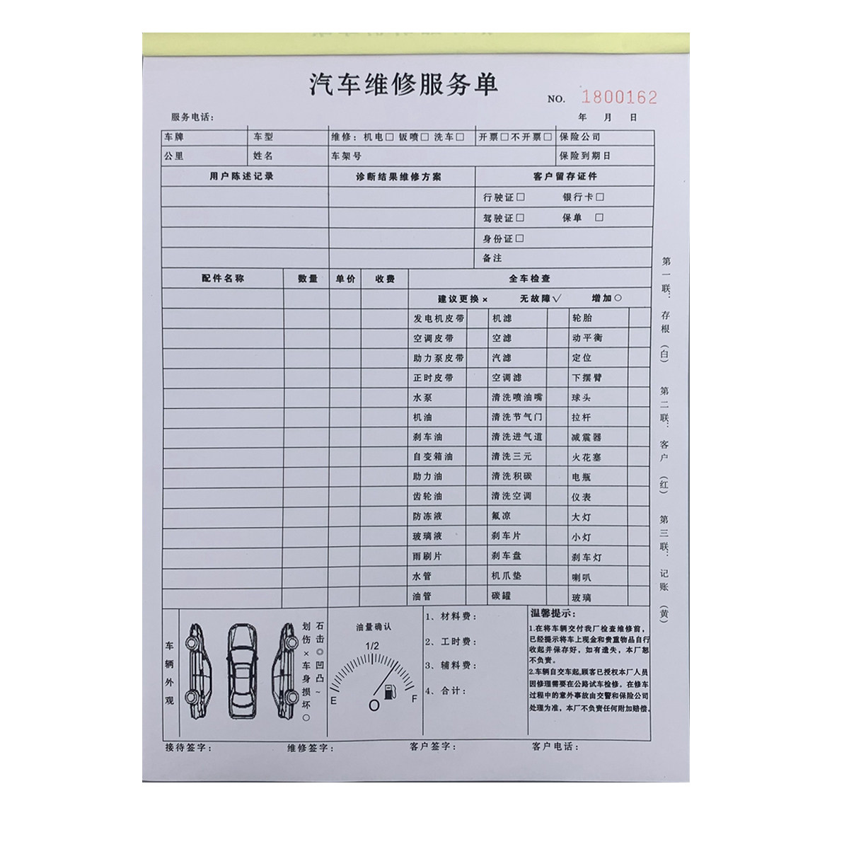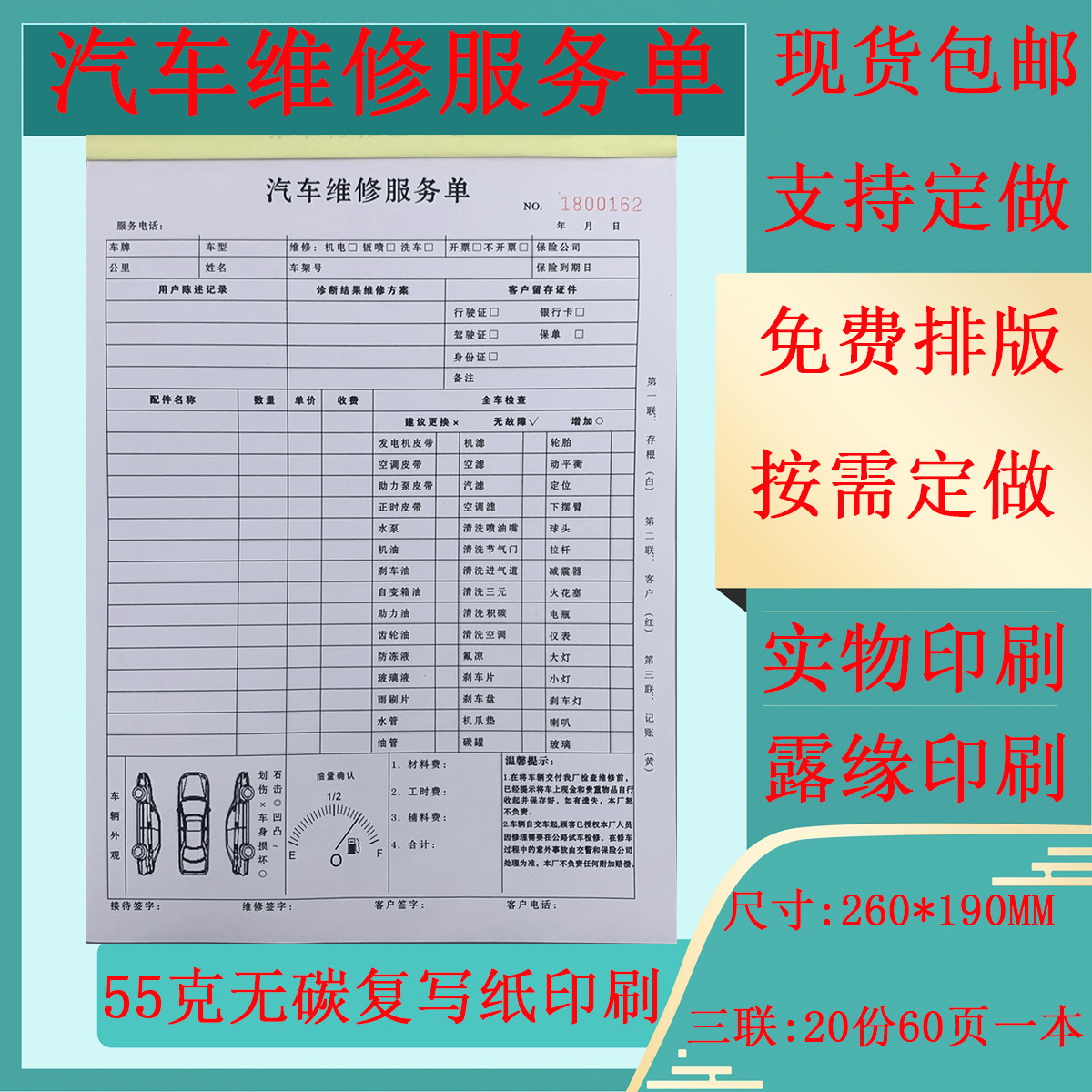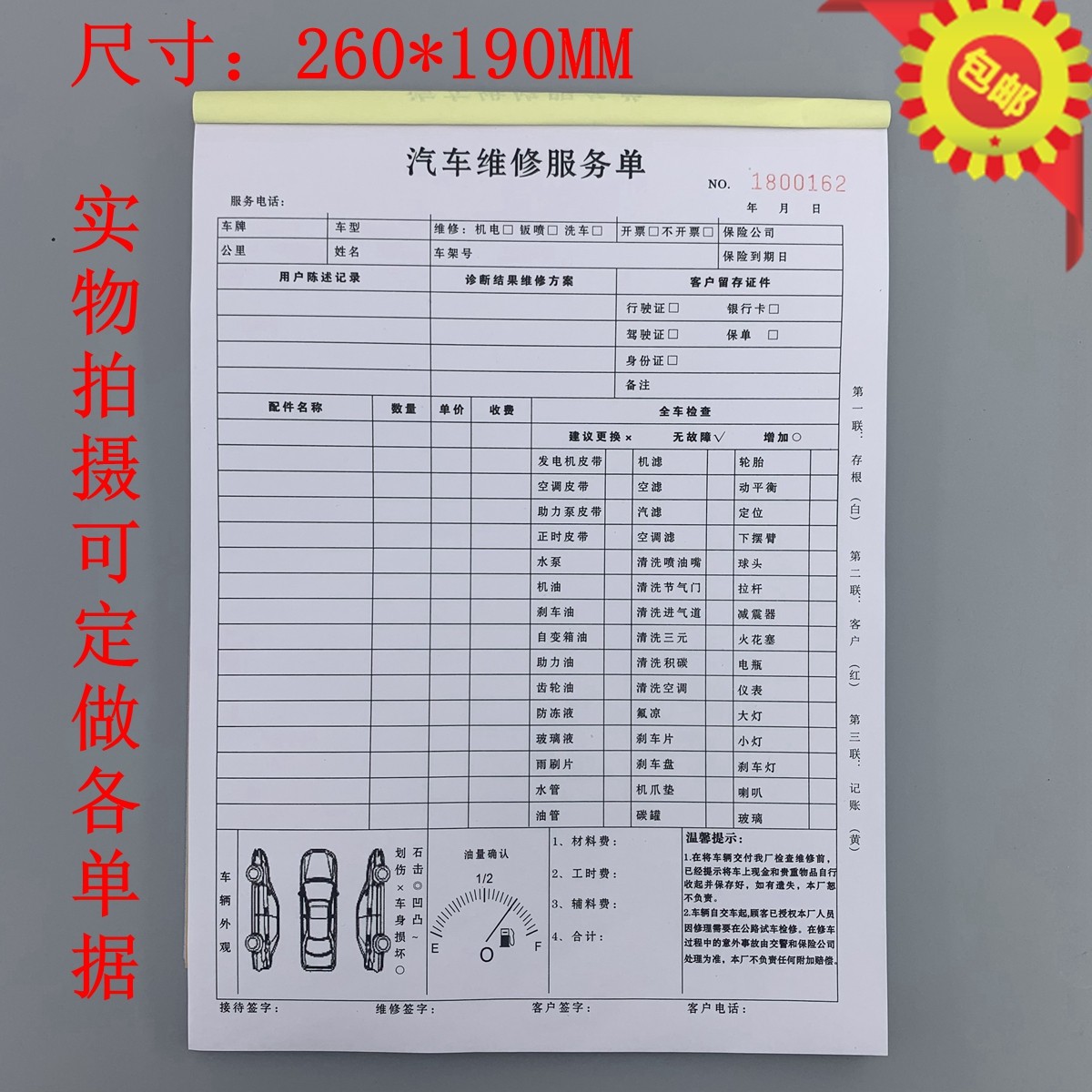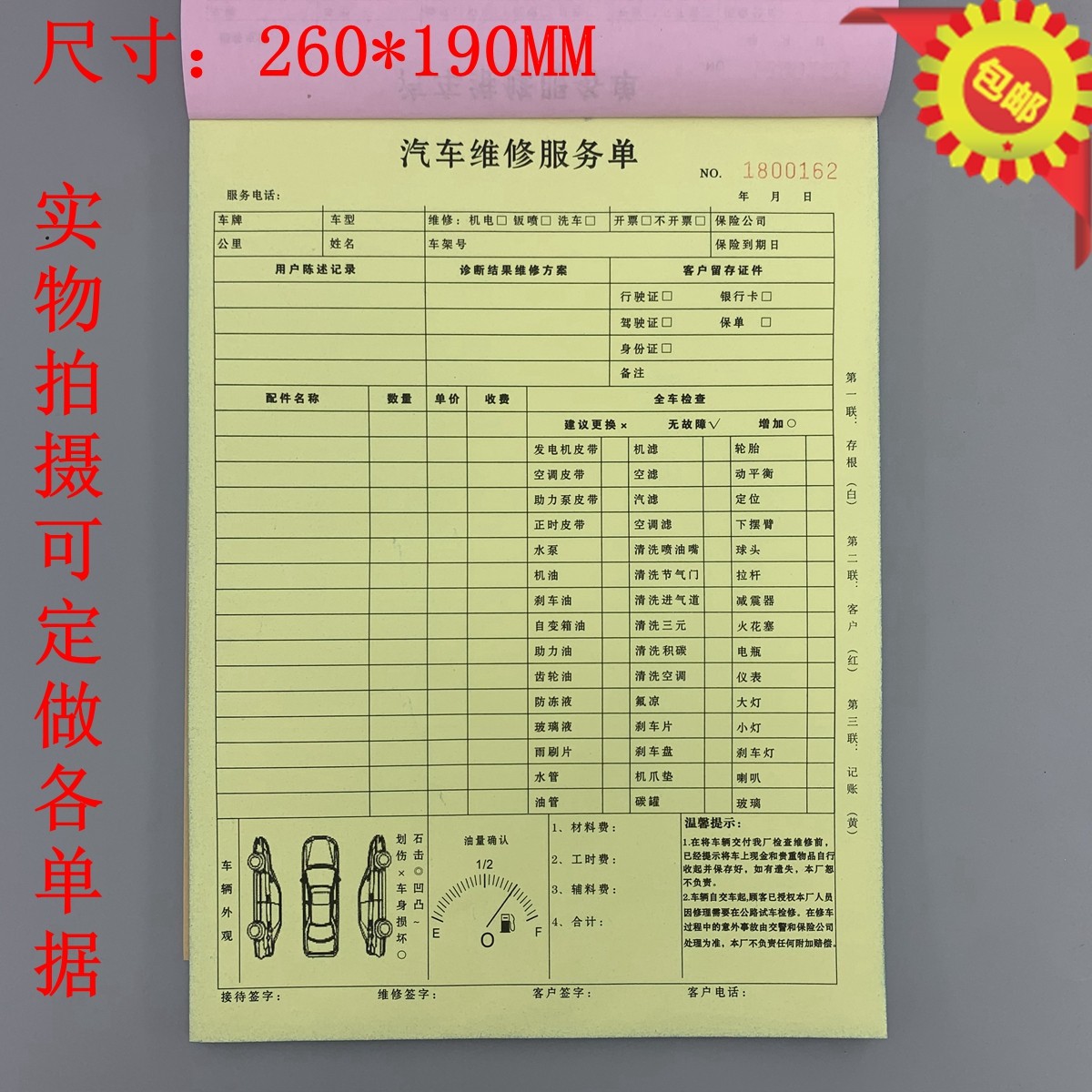 汽车维修服务单贴膜施工单结算单修理单表报价单事故定损单可定制