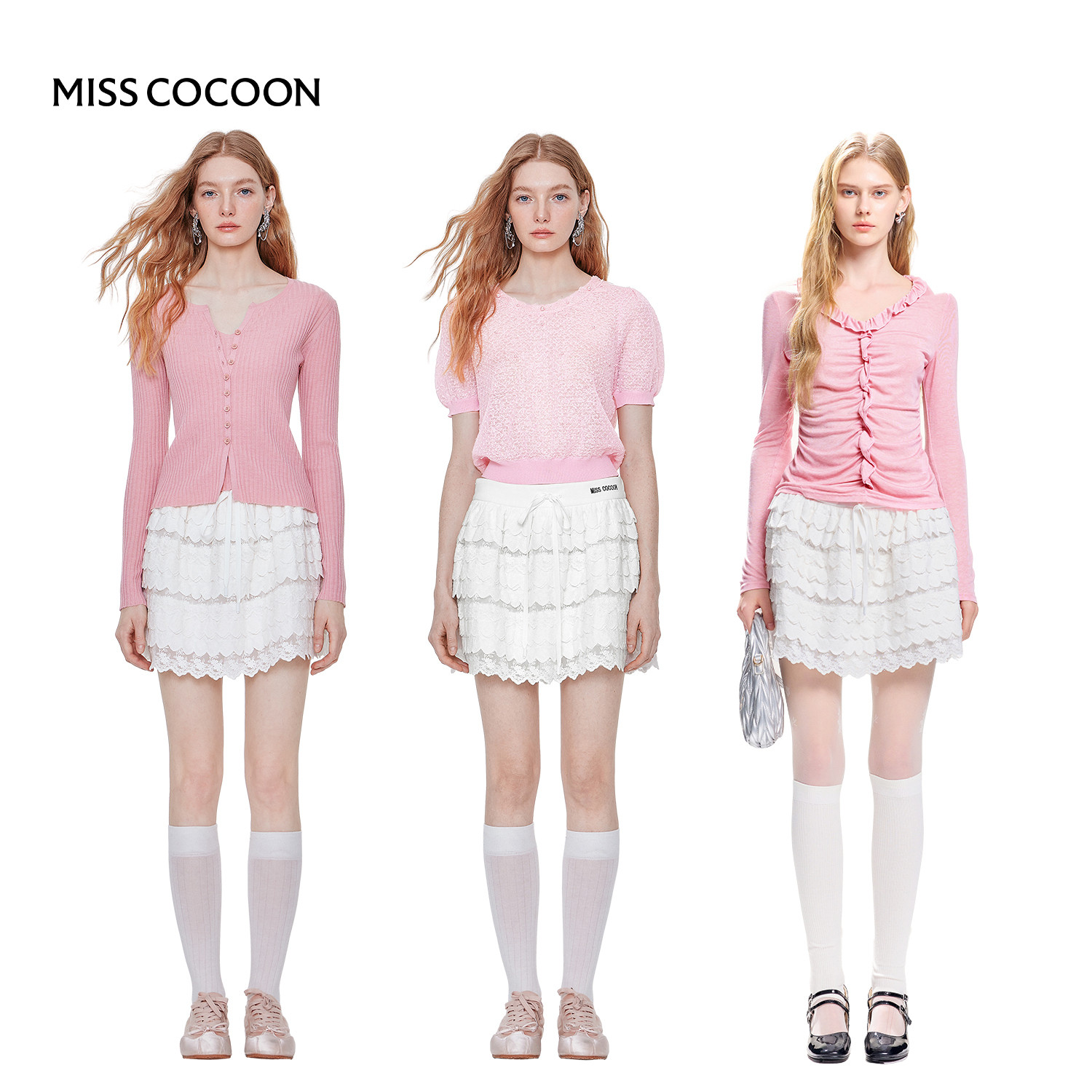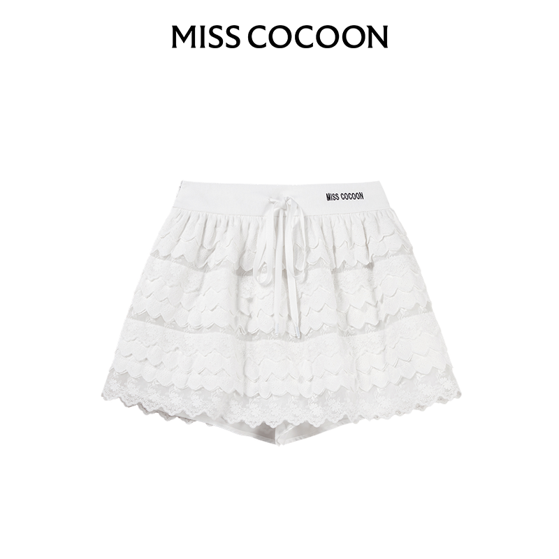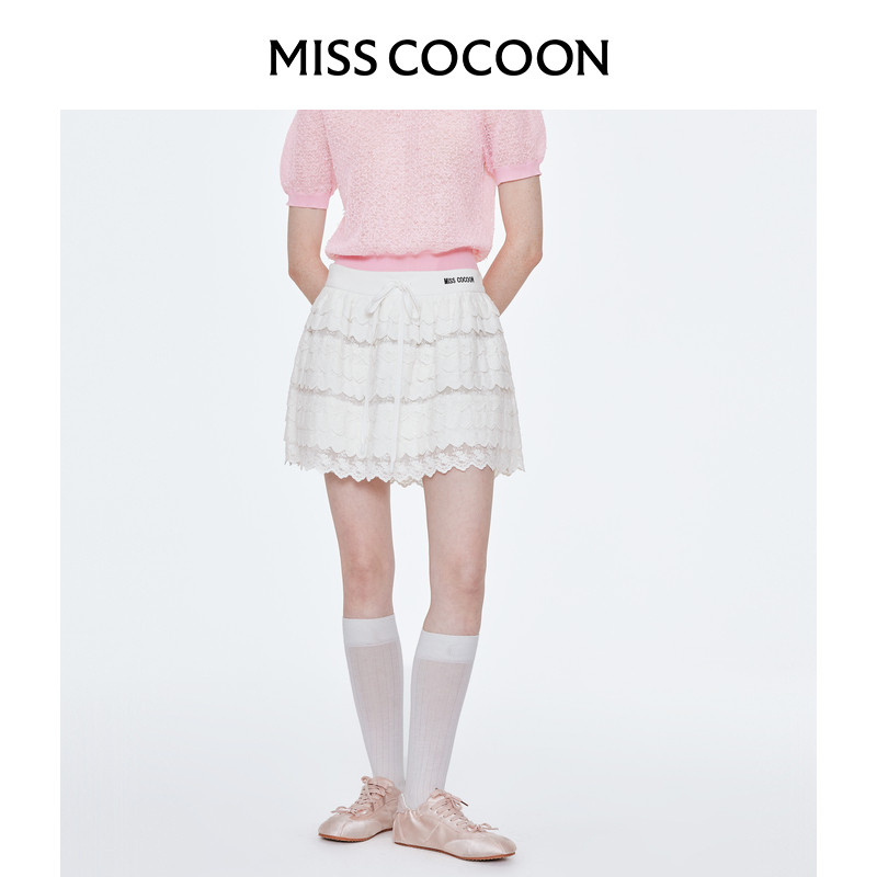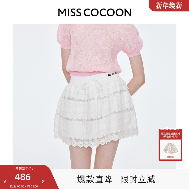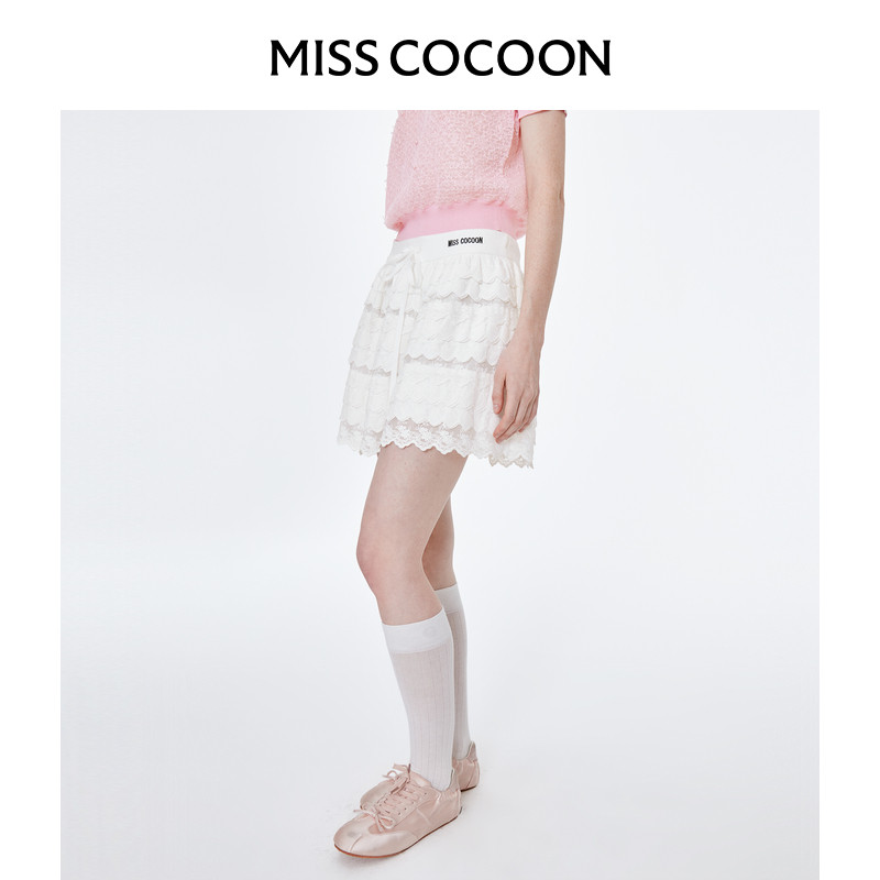 MISSCOCOON白色半身短裙25秋季新款甜妹少女感刺绣蕾丝蛋糕蓬蓬裙