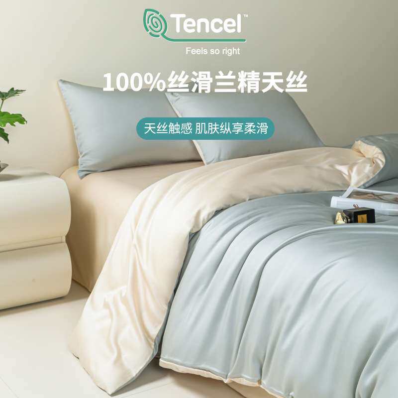 A类母婴级100支兰精天丝四件套夏季丝滑裸睡床单被套冰丝床笠套件