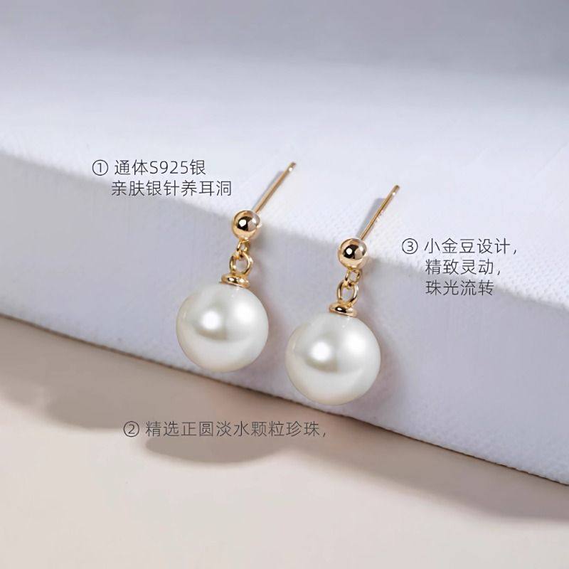 梵宝雅阁诸暨淡水珍珠耳钉女正圆强光巴黎圆舞曲高级感耳环珠宝
