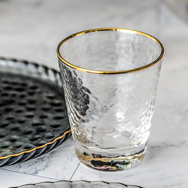 日式金边锤纹玻璃杯透明家用客厅喝水水杯杯子网红ins风茶杯套装