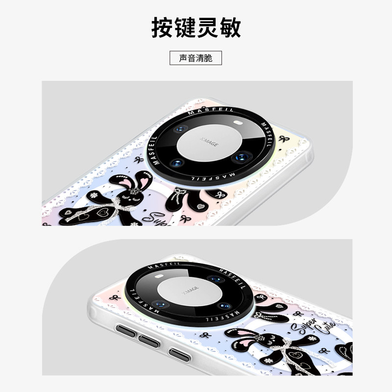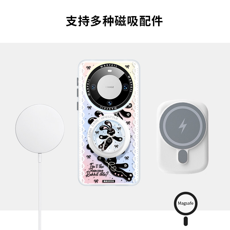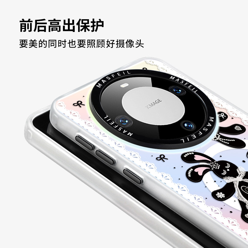 MASFEIL × 蕾丝兔子适用华为Mate60Pro手机壳磁吸带支架mate50/40保护套高级简约mete30新款por+全包网红女