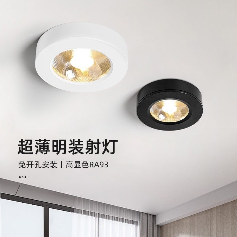 超薄明装射灯免打孔吸顶天花灯led家用小山丘明装圆形小型射灯