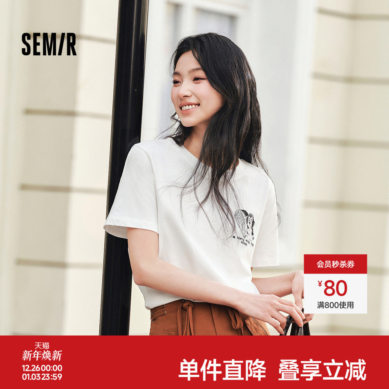 [商场同款]森马短袖T恤女小狗刺绣夏季2025新款纯棉宽松衣服休闲