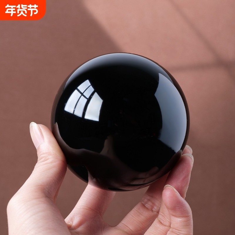 天然水晶球黑曜石球摆件原石矿石加工水晶球家居客厅办公桌面摆设