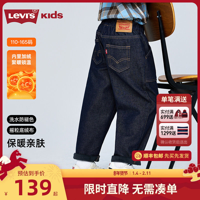 【加绒】李维斯儿童装男童裤子原牛软牛仔裤2025秋冬新款女童长裤