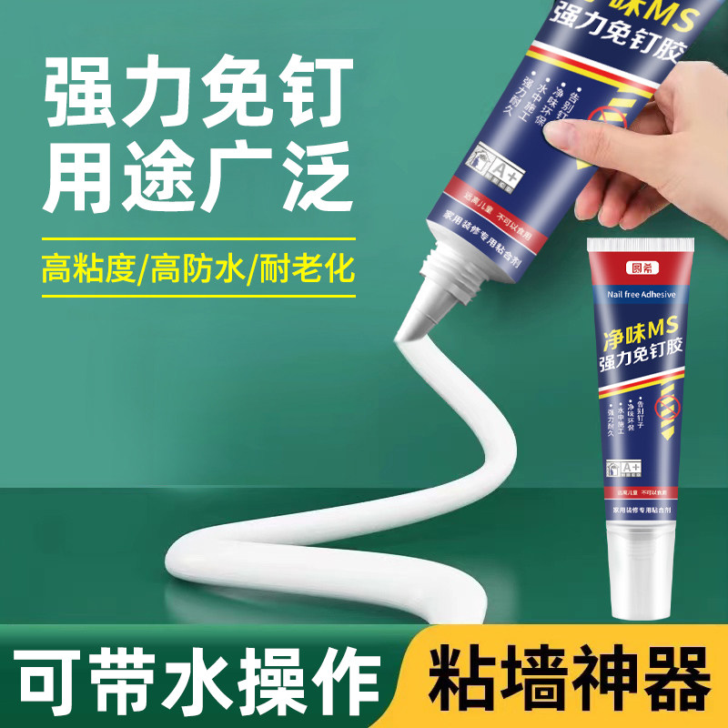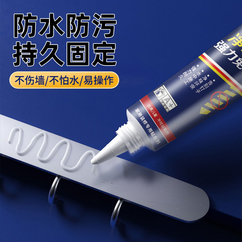 强力高粘免钉胶高粘度粘墙面金属墙壁镜子瓷砖踢脚线卫生间置物架贴墙专用防水家用胶多功能粘得牢免打孔胶水