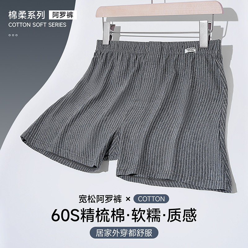 男士居家内裤条纹阿罗裤超薄透气宽松四角内裤男平角裤家居外穿