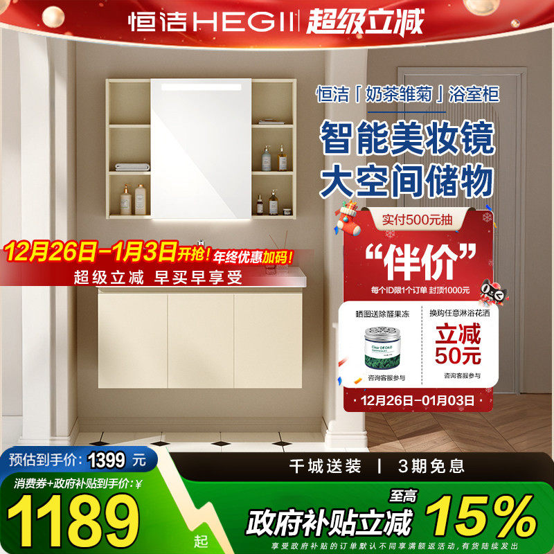 【政府补贴15%】恒洁浴室柜陶瓷一体盆洗手盆6219