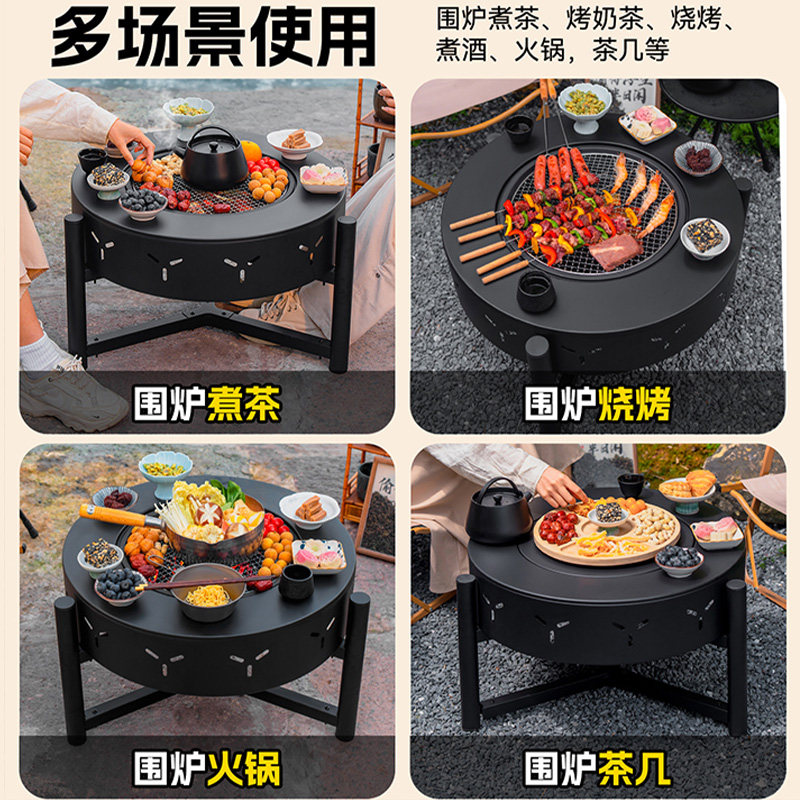 2025新款围炉煮茶烤火炉套装家用室内器具冬天火炉烧烤桌桌子折叠