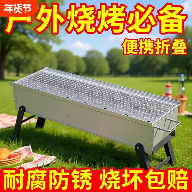 烧烤炉家用烧烤架无烟木小型商用户外野外便携移动烧烤工具不锈钢